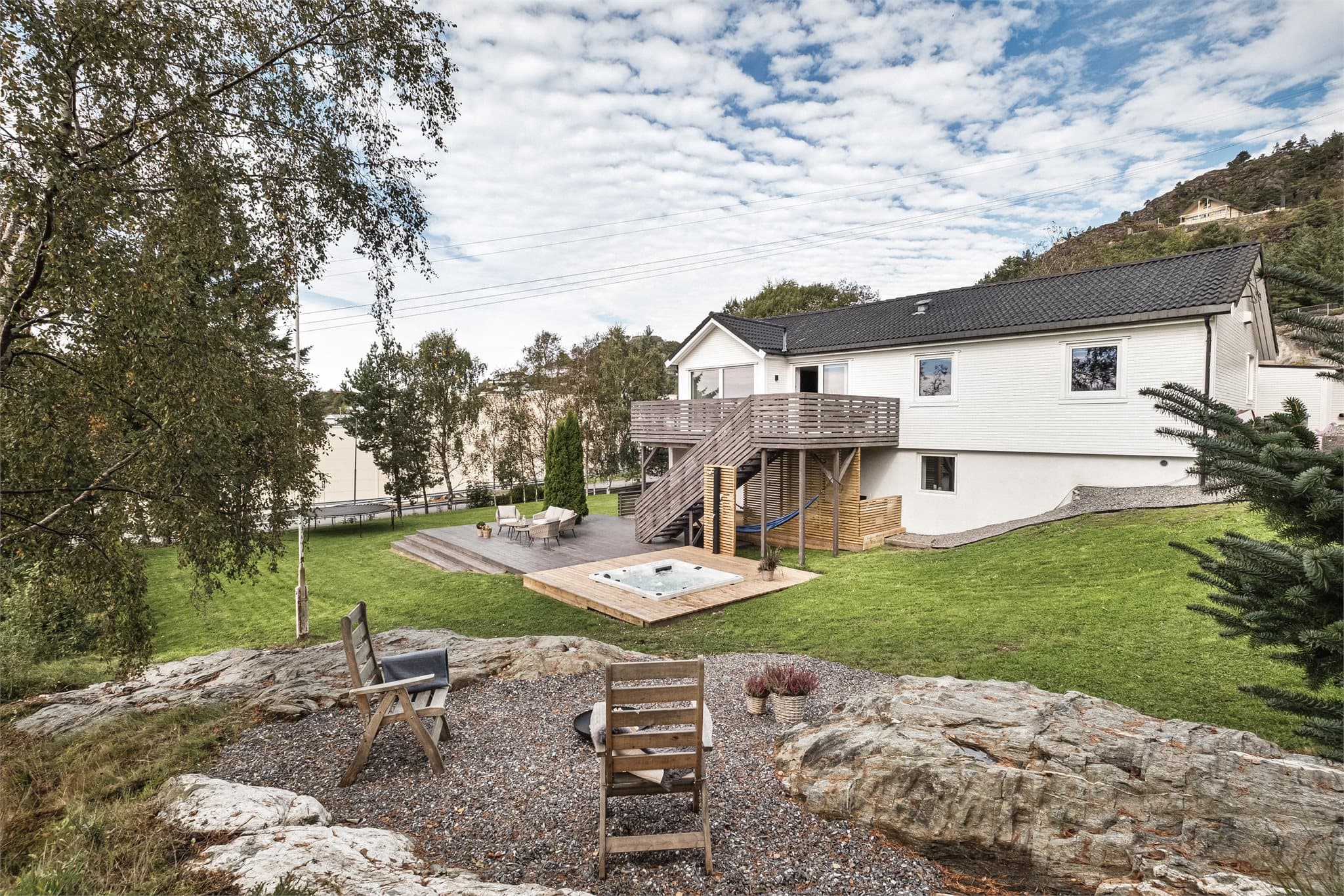 Boligen ligger sentralt og fredelig til i et attraktivt og barnevennlig nabolag på Follese. Her får du det beste av to verdener – grønne omgivelser, kort vei til sjø og flotte turområder, samtidig som alle hverdagens fasiliteter er like i nærheten. Dagligvarebutikker som Rema 1000 Strusshamn, Spar Follese og Kiwi er innen gangavstand. Strusshamn senter byr på blant annet apotek, lege, fysioterapeut og flere spisesteder, mens Kleppestø senter kun ligger en kort kjøretur unna med et bredt utvalg av butikker, vinmonopol og servicetilbud. Nærmeste bussholdeplass ligger kun få minutters gange fra eiendommen, med avganger til Kleppestø terminal. Derfra tar hurtigbåten deg til Bergen sentrum på rundt 15 minutter. Med bil er du i byen på under 20 minutter. For barnefamilier er beliggenheten svært gunstig med kort vei til både barnehager og skoler, blant annet Follese skole og Strusshamn skole. I tillegg byr området og nærmiljø på trygge lekeplasser, fotballbinge og gode oppvekstvilkår. Er du glad i å være ute, har du et rikt tilbud rett utenfor døren. Fra sjø- og bademuligheter ved Træsvatnet til turer i Follesemarka. For innendørs trening finnes treningssentre som Energi Trening og Sporty Askøy i nærheten. Alt i alt er dette et flott sted for både familier, pendlere og friluftsglade som ønsker en kombinasjon av rolig bomiljø, gode sol- og utsiktsforhold og enkel tilgang til byens fasiliteter.