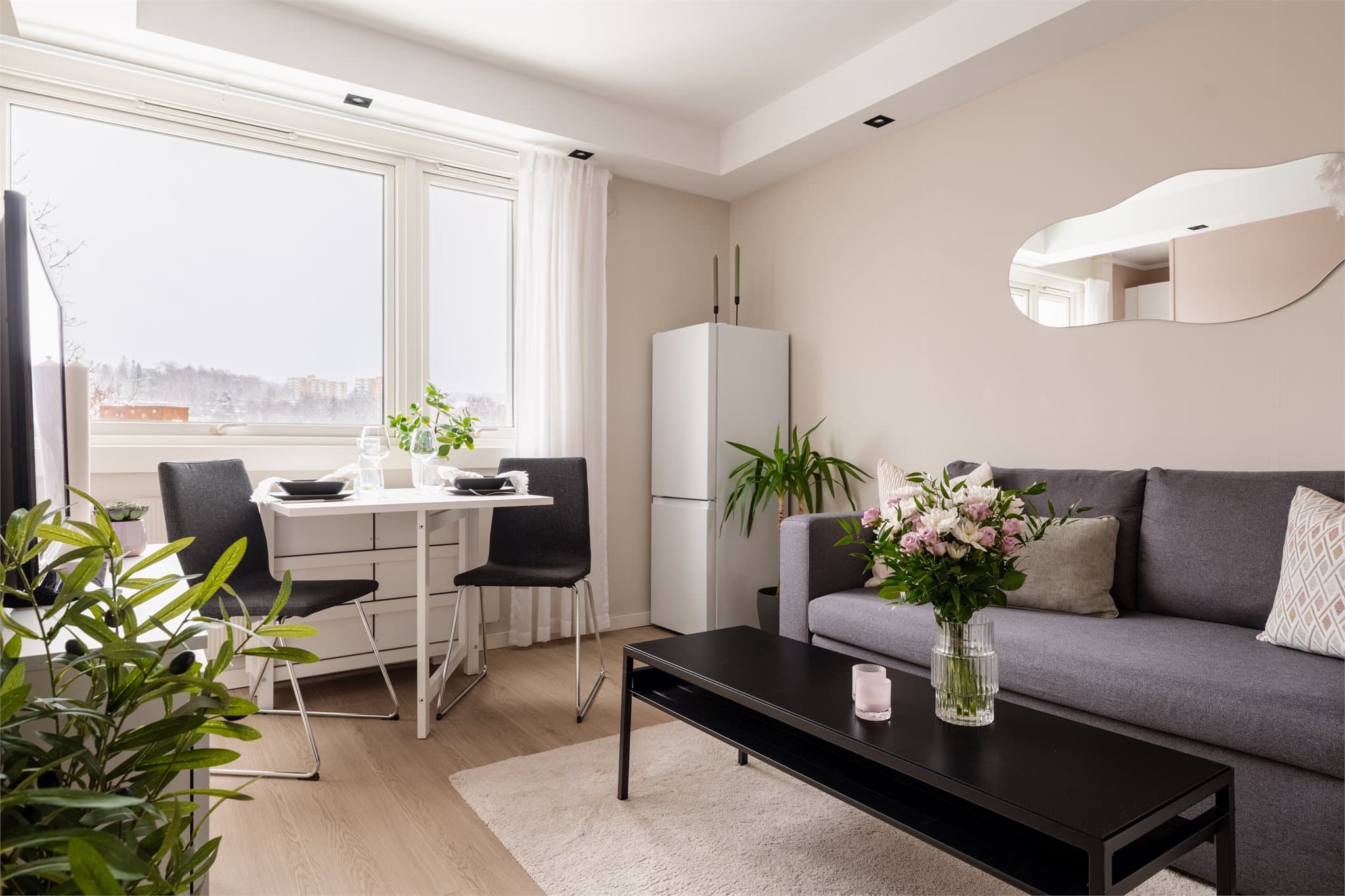 Lys og moderne 1-roms med sovealkove - Fyring/varmtvann inkl - Kjøkken fra 2024 - Bad fra 2018 - Flytt rett inn!