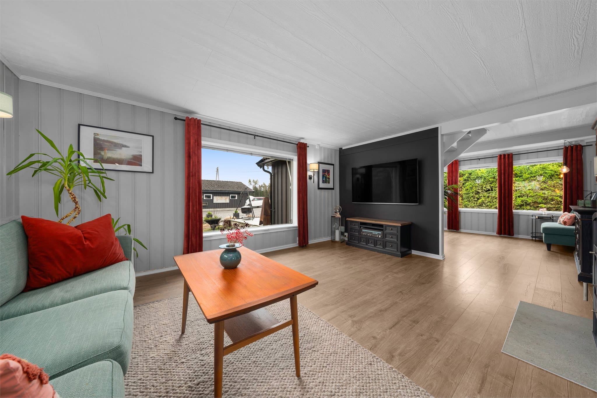 Kjenner du til om det er utført arbeid på bad/våtrom? - Ja, kun av ufaglært/egeninnsats/dugnad. Satt inn dusjkabinett i 2019. Kjenner du til om det er/har vært problemer med drenering, fuktinnsig, øvrig fukt eller fuktmerker i underetasje/kjeller? - Litt saltutslag på enkelte steder. Kjenner du til om det er/har vært sopp/råteskader/insekter/skadedyr på eiendommen som rotter, mus, maur eller lignende? - For 2 år siden tok vi 3 mus i kjelleren, fant inngangen og stengte der. Ingen mus siden. Kjenner du til om det er/har vært skjeggkre i boligen? - Oppdaget sølvkre i kjeller og på bad/wc. Har du ladeanlegg/ladeboks for elbil i dag? - El-billader er installert i garasje. Kjenner du til om det har vært utført arbeid på terrasse/garasje/tak/fasade? - Ja, kun av ufaglært/egeninnsats/dugnad. Bygd terrasse/utestue og drivhus i 2021. Malt hus og garasje utvendig, nye garasjeporter, nye inngangsdører i 2022. Byttet vindskier, blikk, takrenner og nedløp i 2024. Er det andre forhold av betydning ved eiendommen som kan være relevant for kjøper å vite om (f.eks. rasfare, tinglyste forhold eller private avtaler)? - Ja. Boligen er tilknyttet privat renseanlegg fra Biovac. Service utføres 1 gang/år, ca 2.700,-. Tømmingen av avløpet ligger i de kommunale avgifter.