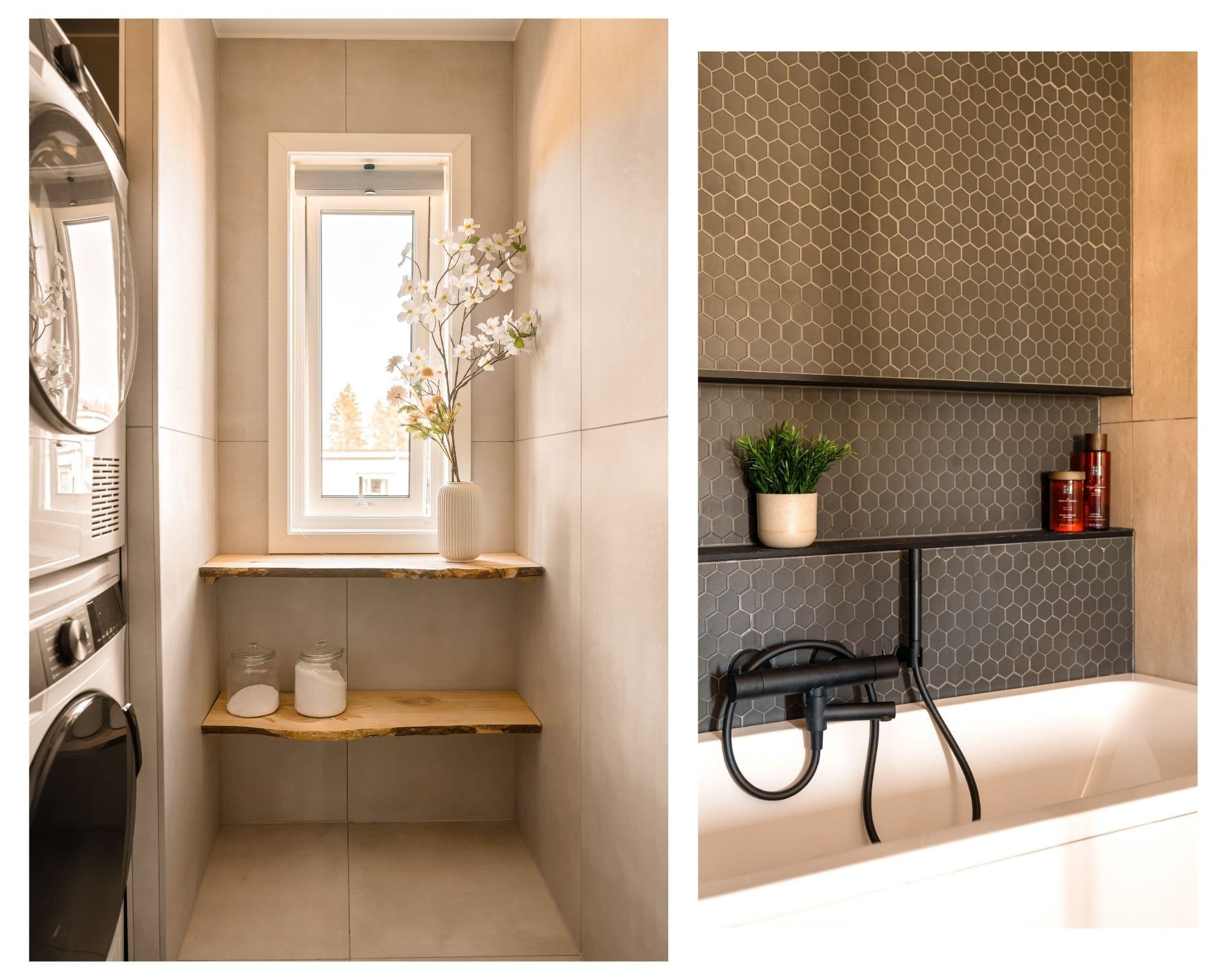 Boligen fremstår i meget god stand, med flere oppgraderinger de siste årene. Her kan du flytte rett inn! Det ønskes velkommen av et hyggelig inngangsparti med terrasse på ca. 39,1 kvm. Her er det god plass til utemøbler, grill og beplantning. Ved inngangspartiet har man også to utvendige boder som tilbyr godt med lagringsplass. Entrè: Det første rommet som møter deg er entrèen. Her er det god plass til å henge fra seg yttertøy i praktisk skyvedørsgarderobe. Stue: Stuen er holdt i moderne og tidsriktige farge- og materialvalg. Den oppleves romslig, med god plass til både sofa- og spisegruppe. Stuen har en hyggelig peisovn, installert i 2022. Denne sørger for ekstra varme og hygge på kjøligere dager. Fra stuen er det utgang til en fantastisk, solrik markterrasse på ca. 40,8 kvm. Her er det god plass til utemøbler, beplantning og grill. Kjøkken: Lekkert og moderne kjøkken fra 2022. Innredningen fra IKEA har glatte, fabrikklakkerte fronter, benkeplate i laminat med nedfelt kum i kompositt og fliser over benkeplate. Kjøkkenet har opplegg for integrert oppvaskmaskin, uttrekkbar kran, platetopp, stekeovn, mikrobølgeovn og integrert kjøl/fryseskap. Det er installert komfyrvakt, samt aquastop/lekkasjevarsler med sensor og magnetventil. Det er naturlig sone for spisegruppe i tilknytning til kjøkkenet. Bad i 1.etg: Lekkert og flislagt baderom med nyere fliser og eldre sluk/tettesjikt. Rommet er innredet med servant med glatte, folierte fronter og heldekkende servant. Det er speil på vegg over servant. Videre har rommet gulvmontert toalett og dusjhjørne med glassfelt, regnfallsdusj, håndholdt dusj og termostatstyrt blandebatteri. Badet ble oppgradert i 2026 med ny membran, fall og fliser. Dette ble utført av eier med fagkompetanse. Bad/vaskerom i 2.etg: Badet ble totalrenovert i 2025. Lyst, delikat og praktisk bad/vaskerom med gulvfliser. Det er varmekabler for ekstra komfort. Rommet er innredet med servantskap med glatte, fabrikklakkerte fronter og heldekkende servant. Videre er det speil med belysning på vegg over servant. Det er veggmontert toalett og dusjhjørne med glassfelt og svingdør, regnfallsdusj, håndholdt dusj og termostatstyrt blandebatteri samt badekar med håndholdt dusj. Rommet har opplegg for både vaskemaskin og tørketrommel. Baderommet er under 5 år gammelt, og det foreligger dokumentasjon på oppbygging. På denne bakgrunn anses hulltaking ikke som påkrevd. Soverom: Boligen har 4 gode soverom, hvorav 3 av disse er beliggende i 2.etg. Hovedsoverommet er beliggende i 1.etg, og har god plass til dobbeltseng. Teknisk: -Interne og synlig avløpsrør i plast, ført til felles rørføringer. -Vannførende rør i plast (rør i rør opplegg) og fleksirør. -Sikringsskap lokalisert i entré/gang. EL-anlegg hovedsakelig fra byggeårene, senere endret/utvidet. Automatsikringer med jordfeilbrytere. Hovedbryter og 18 fordelingskurser. -Varmtvannsbereder på 200 liter, plassert på bad/vaskerom i 2. etasje. Ny i 2025.