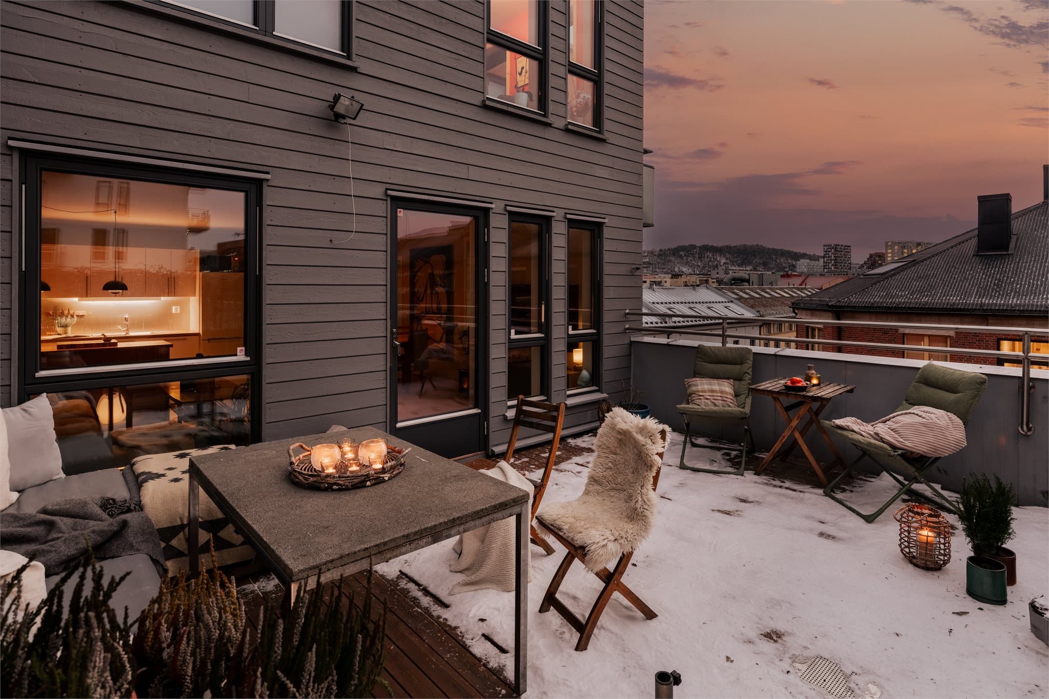 Lys og moderne 3-roms hjørneleilighet i 6. etg. | Privat og solrik takterrasse på 25 m² m/utsikt | Heis | IN-ordning