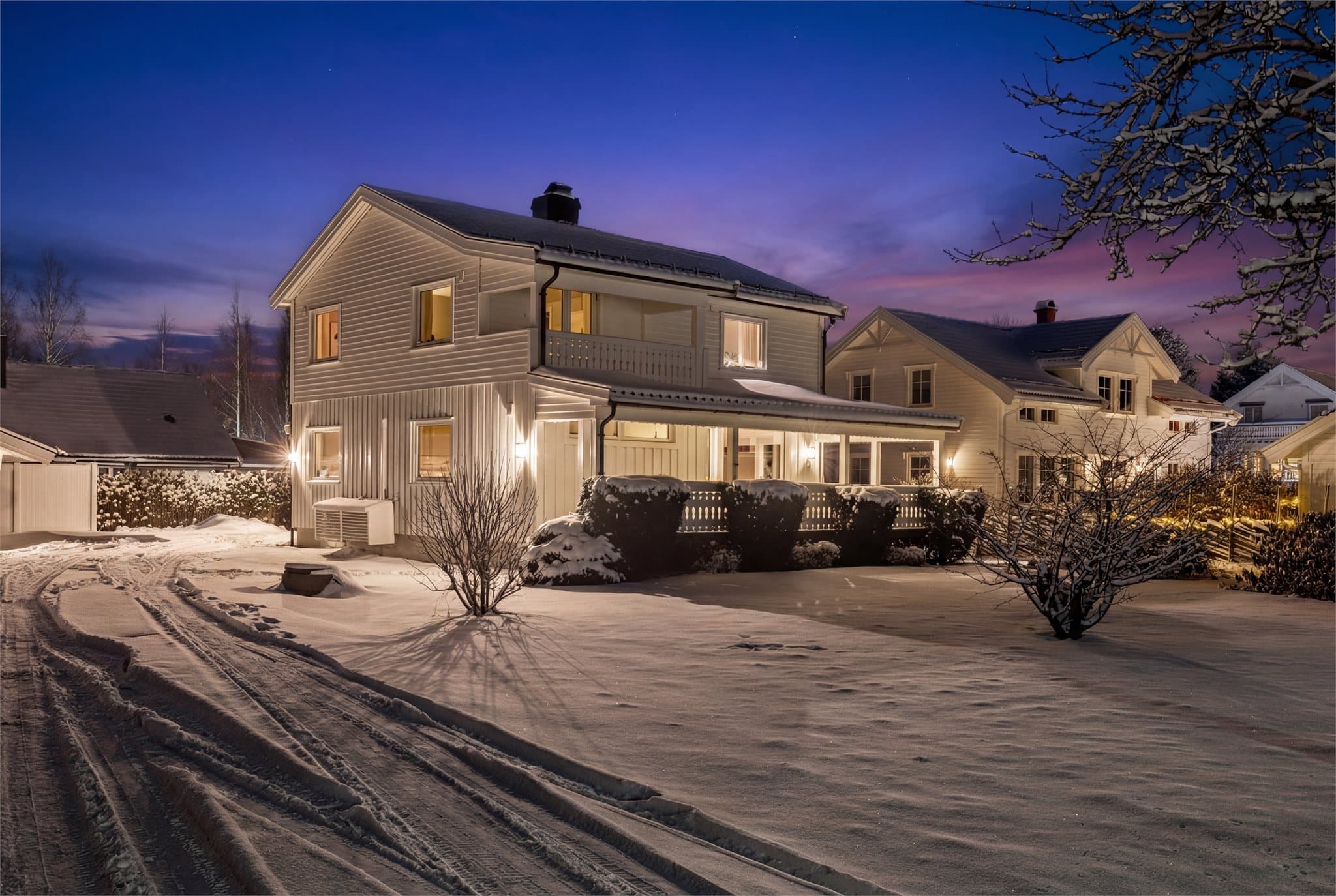 Boligen fra 1946 ble gjennomgående påkostet og modernisert i 2025. Dette inkluderer også ny ytterdør med kodelås, noe barnefamilier vil sette stor pris på. Entréen gir et godt førsteinntrykk med flislagt gulv, gulvvarme og god plass til garderobeløsning. Fra entréen er det adkomst til en romslig gang med varmefolie i gulvet, én-stavs laminatgulv fra Pergo og ny trapp opp til andre etasje. Vegg- og takflater er helsparklet og slette, himlingen er listefri og fargevalget er gjennomført i lyse, delikate beigetoner, noe som går igjen i hele boligen og skaper et stilrent uttrykk. I tilknytning til gangen i 1. etasje ble det i 2025 etablert et smart gjestetoalett med overflater og innredning fra 2025. Her er det flislagt gulv med gulvvarme, membran, veggmontert toalett, speil og pen servantinnredning med rillefront. Gangen leder videre inn til både kjøkken og stue. Stuen er gjennomgående med gode vindusflater i tre himmelretninger, samt utgang til en lun, overbygd terrasse på ca. 24 kvm med god plass til utemøbler. Terrassen er nylig overflatebehandlet og leder ut til hagen med plen og beplantning. Stuen lar seg enkelt møblere med både spisestue og tv-lounge i hver sin sone. Mellom sonene er det plassert en ny peisovn fra Aduro med glass på tre sider og stort flammebilde. Den lune stuen har videre varmefolie i gulvet, samt en varmepumpe som også gir kjøling om sommeren. Kjøkkenet ligger tilknyttet stuen, men i eget rom med godt dagslys fra et stort vindu og fin plass til et frokostbord. IKEA-innredningen fra 2025 er holdt i et stilrent design med slette fronter, takhøye skap og samme beigetone som veggflatene. Innredningen er plassert langs én vegg og byr på god arbeidsflyt, samt rikelig med oppbevaringsplass i skap og skuffer. Innredningen er utstyrt med integrert stekeovn, oppvaskmaskin, kjøl/frys, bred koketopp og ventilator. Videre er det benkeplate i grå laminat med underlimt vaskekum og matchende backsplash. Komfyrvakt og automatisk vannstopper er montert i henhold til gjeldende regler. I andre etasje er det etablert hele fire soverom, samt et familievennlig bad. Badet ble utvidet og renovert i 2025 av fagfolk, med et utsøkt resultat. Her ble det benyttet beige storformatfliser på gulv med varmekabler, kombinert med slette veggflater og listefri himling. Dusjhjørnet er helfliset med storformatfliser på veggene, matchende mosaikk på gulvet, regnfallsdusj fra Tapwell og innfellbare glassdører. Den øvrige innredningen består av en heldekkende servant på nøttebrun skuffeseksjon, speil og et veggmontert toalett. En høytsittende vindusrekke gir friskt dagslys og i himlingen er det montert downlights. I hjørnet av rommet er det opplegg for vaskemaskin og tørketrommel. De fire soverommene har alle en fin størrelse med plass til seng og garderobeløsning. I forbindelse med oppussingen ble gulvet avrettet, alle vegger revet, etterisolert og bygget opp med gips på vegger og i tak. Alle rommene oppe har adkomst via massive innerdører med trendy, sorte vridere. To av rommene er ekstra romslige og fra hovedsoverommet er det utgang til en balkong. Uteplassen er overbygd og er oppgradert med nye komposittheller. Boligen har også ny takluke til kryploft, samt rehabilitert trapp ned til en kjeller med takhøyde på ca. 1,7 meter og romslig gulvareal på ca. 59 kvm, noe som gir godt med lagringsplass og rom for hobbysysler. Det er etablert varmepumpe og nye klaffventiler for bedre ventilasjon i kjelleren. I forbindelse med oppussingen ble det montert helt nytt elanlegg, inkludert nytt hovedinntak, sikringsskap, utvendig elskap, innvendig anlegg og belysning. Elbillader av typen Zaptec Go er etablert på egen kurs. Deler av kledningen er skiftet, ytterveggene malt og ny levegg etablert. Pipen ble rehabilitert utvendig og kontrollert innvendig. Alle vinduer, balkongdører og ytterdør er skiftet i 2025. Det er videre to garasjer, én sammenbygget garasje og én frittstående garasje. I sammenbygd garasje ble det skiftet vinduer, mens den frittstående garasjen er rettet opp og egner seg best til lagring. I tillegg er det parkering på egen gårdsplass med plass til flere biler. Det er tinglyst veirett over naboeiendom 16A, med delt vedlikeholdsansvar.