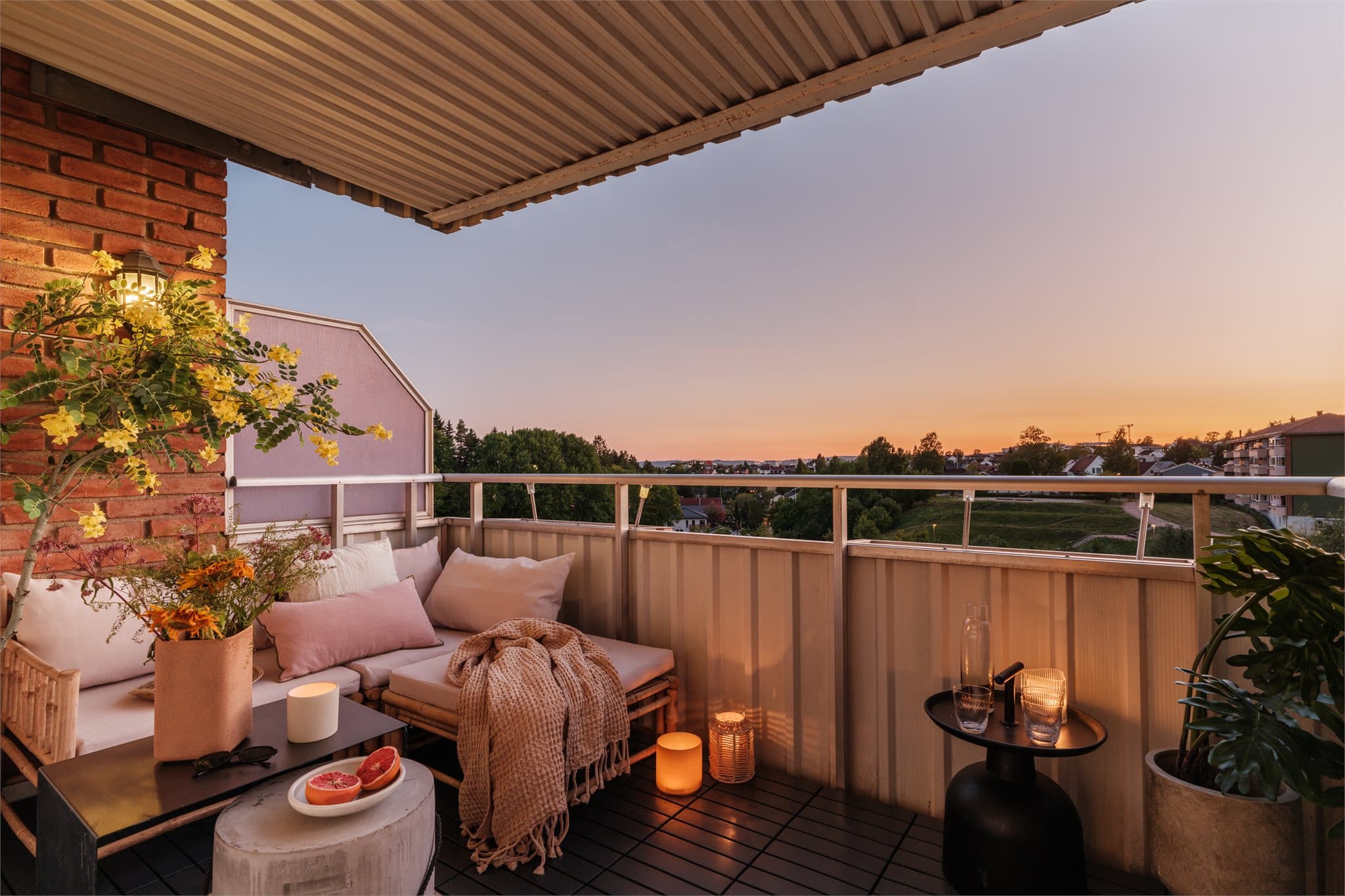 Stue og spisestue Den romslige stuen byr på en åpen og luftig følelse med god plass til både sofagruppe og spiseplass. Store vinduer sikrer flott lysinnslipp og gir en behagelig atmosfære. Herfra er det også utgang til en hyggelig balkong med god plass til utemøbler – et perfekt sted for rolige morgener eller sosiale kvelder. Kjøkken Separat kjøkken med en funksjonell utforming og rikelig med skap- og benkeplass. Kjøkkenet er innredet i en klassisk stil med lyse fronter og kontrastfarget benkeplate, samt moderne integrerte hvitevarer. Her er det godt tilrettelagt for matlaging og oppbevaring. Soverom Boligen har tre soverom av god størrelse. Hovedsoverommet har plass til dobbeltseng, nattbord og garderobeløsning, mens de øvrige rommene egner seg godt som barnerom, gjesterom eller hjemmekontor etter behov. Bad Flislagt bad med dusjhjørne, toalett, servant med speilskap. Praktisk planløsning og lyse farger gir et rent og tidløst preg. Balkong Leiligheten har en romslig og skjermet balkong med hyggelig utsyn over nærområdet. Her er det plass til sittegruppe og beplantning, perfekt for avslapning på varme dager.
