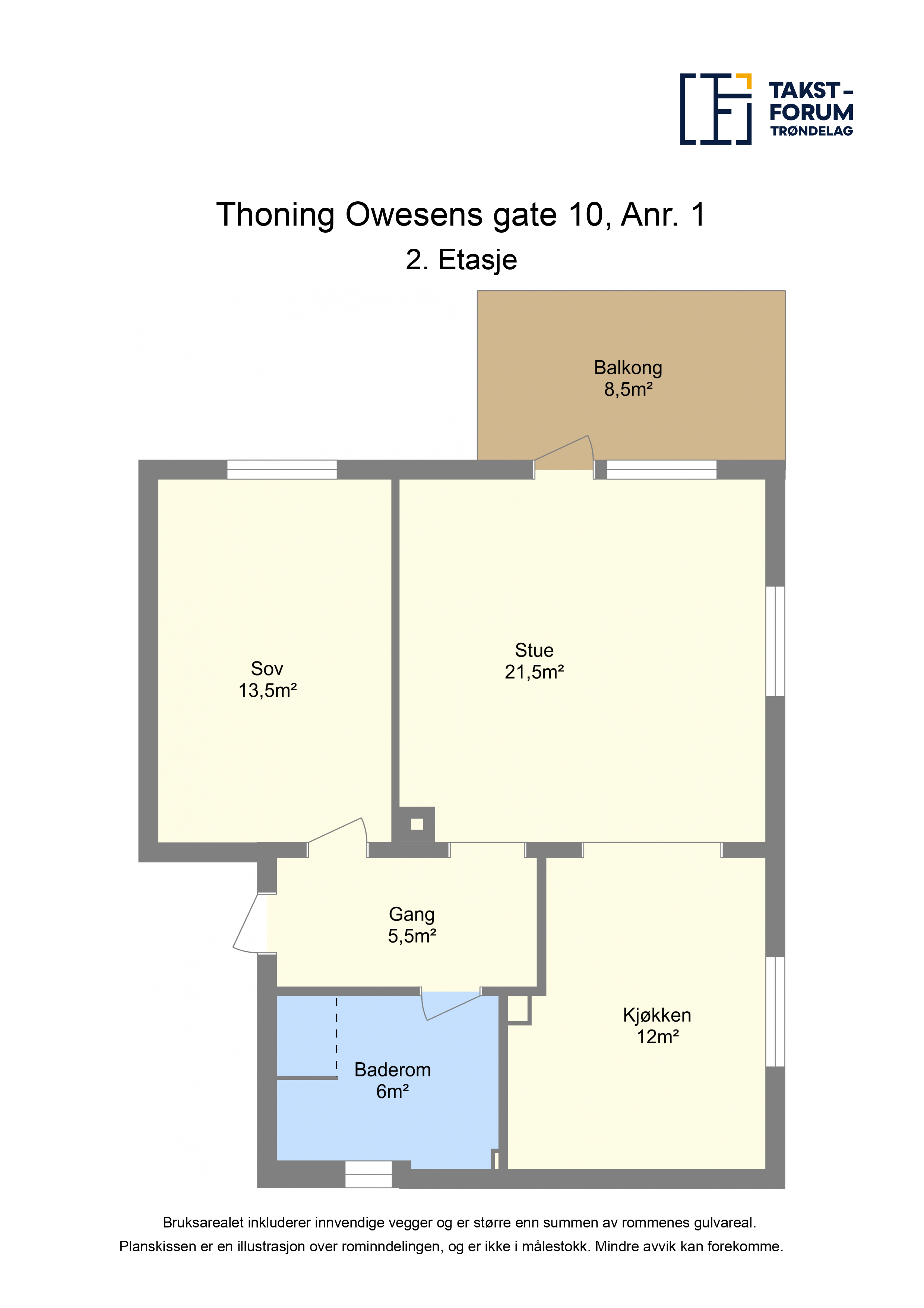 Regelverk og generelle opplysninger Ved overdragelse av aksjeleiligheter er det som hovedregel kjøpsloven som regulerer handelen. I dette tilfellet vil likevel reglene i avhendingsloven benyttes så langt de passer. Om informasjonsgrunnlaget Opplysninger om boligens størrelse og utforming, både innvendig og utvendig, bygger på informasjon hentet fra vedlagte tilstands- og boligsalgsrapport. Innholdet i salgsoppgaven er basert på selgers informasjon, fagkyndig vurdering, samt opplysninger fra offentlige registre som kommunen og Kartverket. Det er viktig at kjøper setter seg grundig inn i alle salgsdokumentene, herunder salgsoppgave, tilstandsrapport og selgers egenerklæring. Kjøper anses for å være kjent med forhold som er tydelig beskrevet i salgsdokumentene, slike forhold kan ikke senere gjøres gjeldende so men mangel ved boligen. Dette gjelder uavhengig av om dokumentene er lest. Det kan være forskjell mellom boligens faktiske bruk av rom og det som er godkjent av myndighetene. Alle interessenter anbefales derfor å undersøke eiendommen nøye, gjerne sammen med fagperson, før bud gis. Dersom kjøper velger å kjøpe uten å ha sett eiendommen, kan det ikke etter overtakelse reklameres på forhold som burde ha vært oppdaget ved en ordinær gjennomgang. Dersom det oppstår behov for ytterligere avklaringer, oppfordres interessenter til å kontakte eiendomsmegler eller egne rådgivere før de gir bud. Slitasje og bruk Det må også forventes at eiendommer som har vært i bruk, vil kunne ha tegn til slitasje og eventuelle skader. Slik normal bruksslitasje og behov for vedlikehold må kjøper påregne, og dette vil normalt ikke gi grunnlag for reklamasjon eller prisavslag. Avtalerettslig Partenes rettigheter og plikter reguleres av avtalen mellom partene, og all tilgjengelig dokumentasjon som forelå for kjøper før handelen ble inngått. I tillegg gjelder avhendingsloven. Det gjelder ulike avtalevilkår avhengig av om kjøper er forbrukerkjøper eller ikke, og dette er nærmere forklart nedenfor. Budgivning og selgers vurdering På grunn av ulike ansvarsforhold kan selger velge å prioritere bud fra ikke-forbrukere, selv om budet er lavere enn et forbrukerbud. Når kjøper ikke er forbruker, kan selges ansvar begrenses ettersom boligen selges «som den er», noe som kan være av verdi for selger. Det understrekes at selger står fritt til å velge hvilket bud som aksepteres, og er ikke forpliktet til å velge det høyeste. Alle budgivere må ved inngivelse av bud opplyse om de opptrer som forbruker eller som næringsdrivende/person som handler hovedsakelig som ledd i næringsvirksomhet. Det vil opplyses hvis konkurrerende bud kommer fra en ikke-forbruker. Forbrukerkjøp – definisjon og vilkår: Et forbrukerkjøp foreligger når en fysisk person kjøper eiendom uten at formålet hovedsakelig er knyttet til næringsvirksomhet. En eiendom anses å ha en mangel dersom den ikke oppfyller kravene som følger av avtalen, eller ved brudd på bestemmelser i avhendingsloven §§ 3-2 til 3-8. Det samme gjelder hvis eiendommen ikke samsvarer med det som med rimelighet kunne forventes ut fra blant annet alder, type og synlig tilstand – eller hvis det er tilbakeholdt, eller gitt feilaktige opplysninger, og dette har påvirket avtalen. Dersom det er avvik mellom oppgitt og faktisk innvendig areal på minst 2 % og samtidig minst 1 kvadratmeter, kan dette utløse rett til kompensasjon etter § 3-3 i avhendingsloven. Ved beregning av krav om prisavslag eller erstatning må kjøper selv dekke kostnader med inntil kr 10 000 (som en egenandel). Ikke-forbruker – definisjon og vilkår: Dersom kjøper er en juridisk enhet, eller en fysisk person som handler i næringssammenheng, regnes kjøpet ikke som et forbrukerkjøp. Ved slike kjøp selges eiendommen «som den er», og selgers ansvar er begrenset til det som følger direkte av avtalen, jf. avhendingsloven § 3-9. I disse tilfellene fravikes § 3-3 andre ledd, og eventuelle arealavvik vurderes etter § 3-8. Kjøperens plikt til å foreta grundige undersøkelser gjelder også fullt ut for kjøpere som ikke omfattes av forbrukerdefinisjonen.