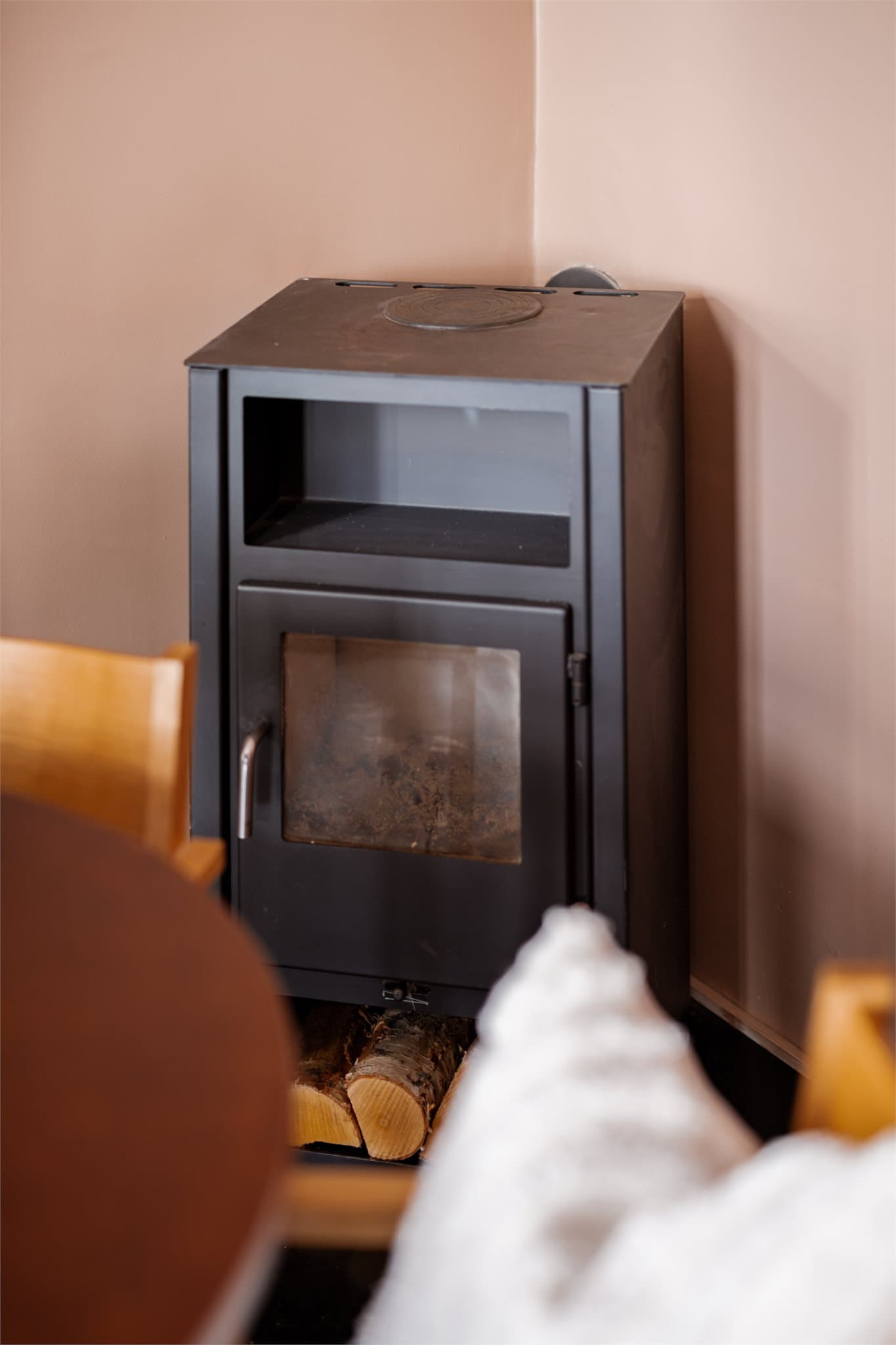 Oppvarming med elektrisitet og vedfyring. Boligen har vedovn. Det er elektriske varmekabler på bad/vaskerom.