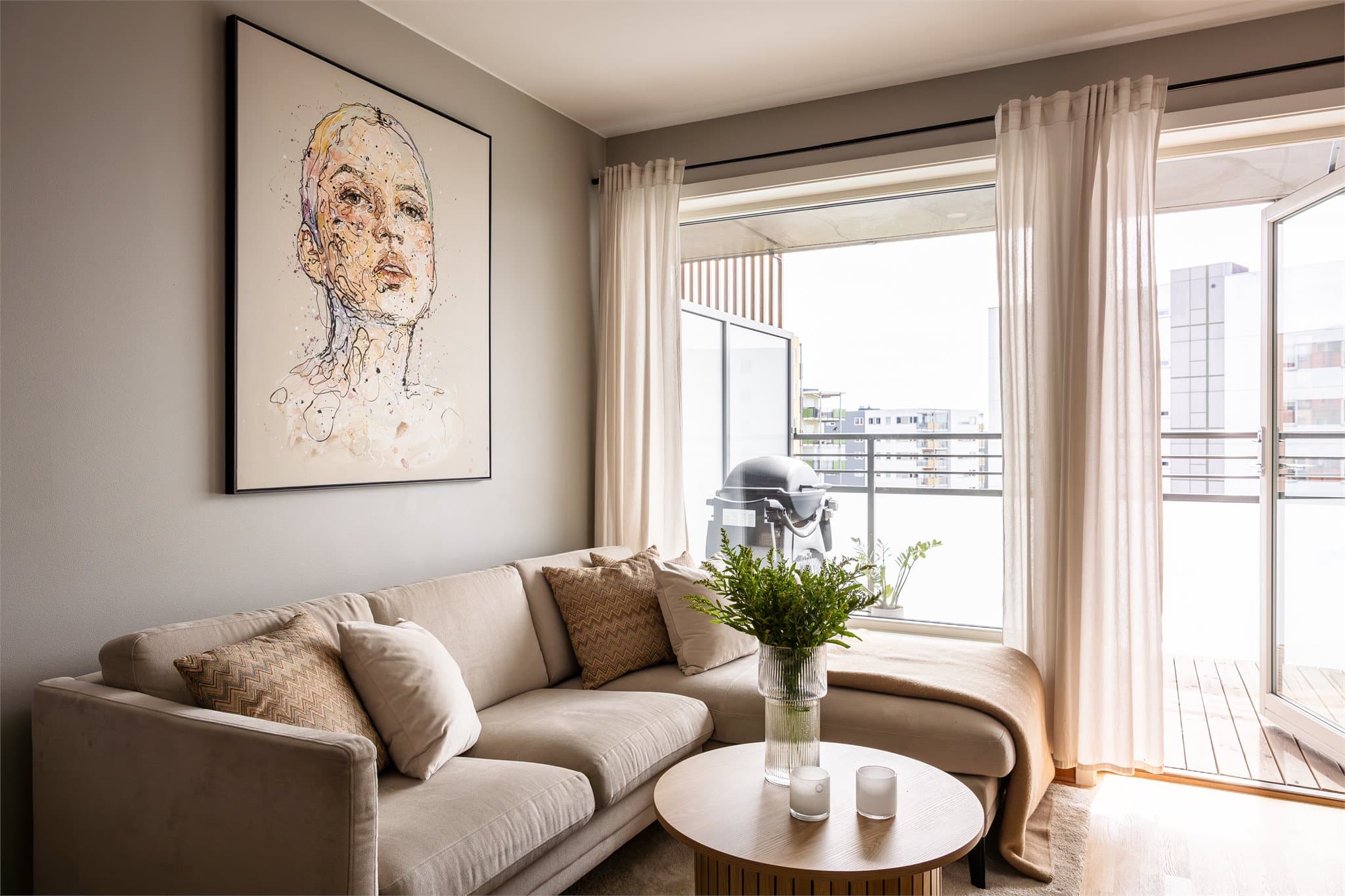 Lys og lekker 3-roms | Stor og solrik balkong på 13 kvm | Fin og "fri" internbeliggenhet | Garasjeplass m. lader! |