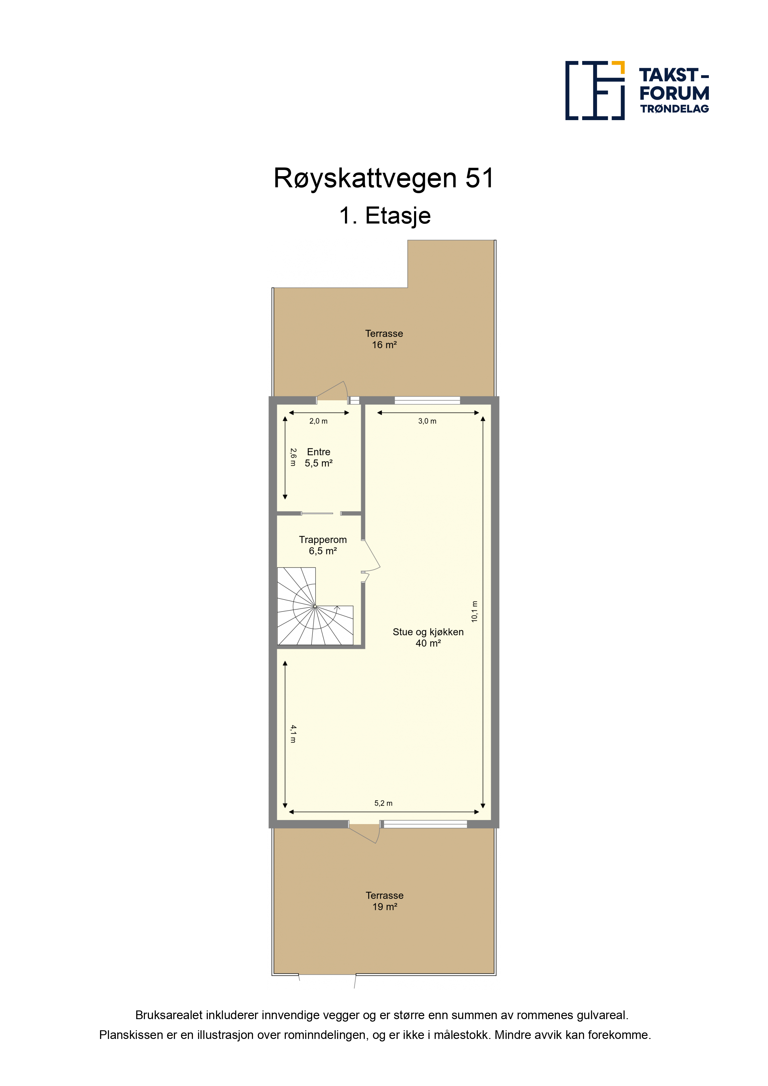 BRA-I: 52 m² Entre, trapperom og stue/kjøkken