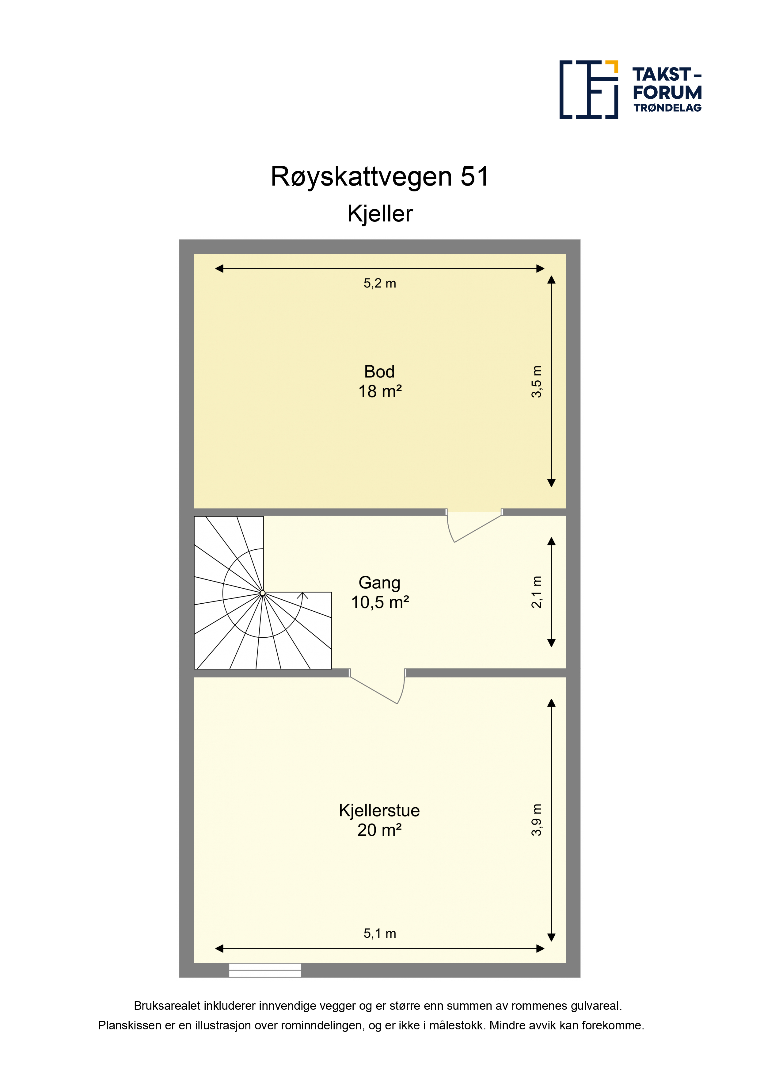 BRA-I: 50 m² Gang, kjellerstue (ikke godkjent) og bod