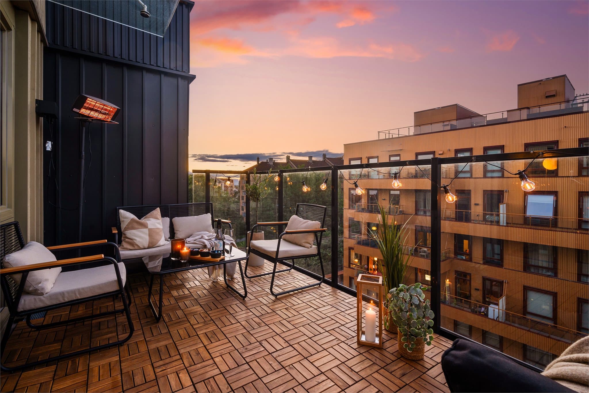 Velkommen til Skedsmogata 25F. Leiligheten ble ferdigstilt i 2024 og fremstår som både moderne og gjennomført med eksklusive detaljer. Vannbåren gulvvarme gir både komfort, lun varme og godt inneklima sommer som vinter. HTH-Kjøkkenet har et elegant uttrykk med stilrene løsninger, og åpner seg sømløst mot stuen som bader i naturlig lys gjennom store vindusflater. Stuen har utgang til en balkong vendt mot sør, hvor du kan nyte solen, utsikten og gode lysforhold store deler av dagen. Boligen inneholder tre gode, lyse soverom som gir fleksibilitet til familieliv, hjemmekontor eller gjester. Nytt i 2024 - Høy standard Hjørneleilighet *Kjøpe p-plass eller ta over leie Garanti til 2029 To bad, hvorav ett en-suite 1-Stavs eikeparkett Felles takterrasse Bod