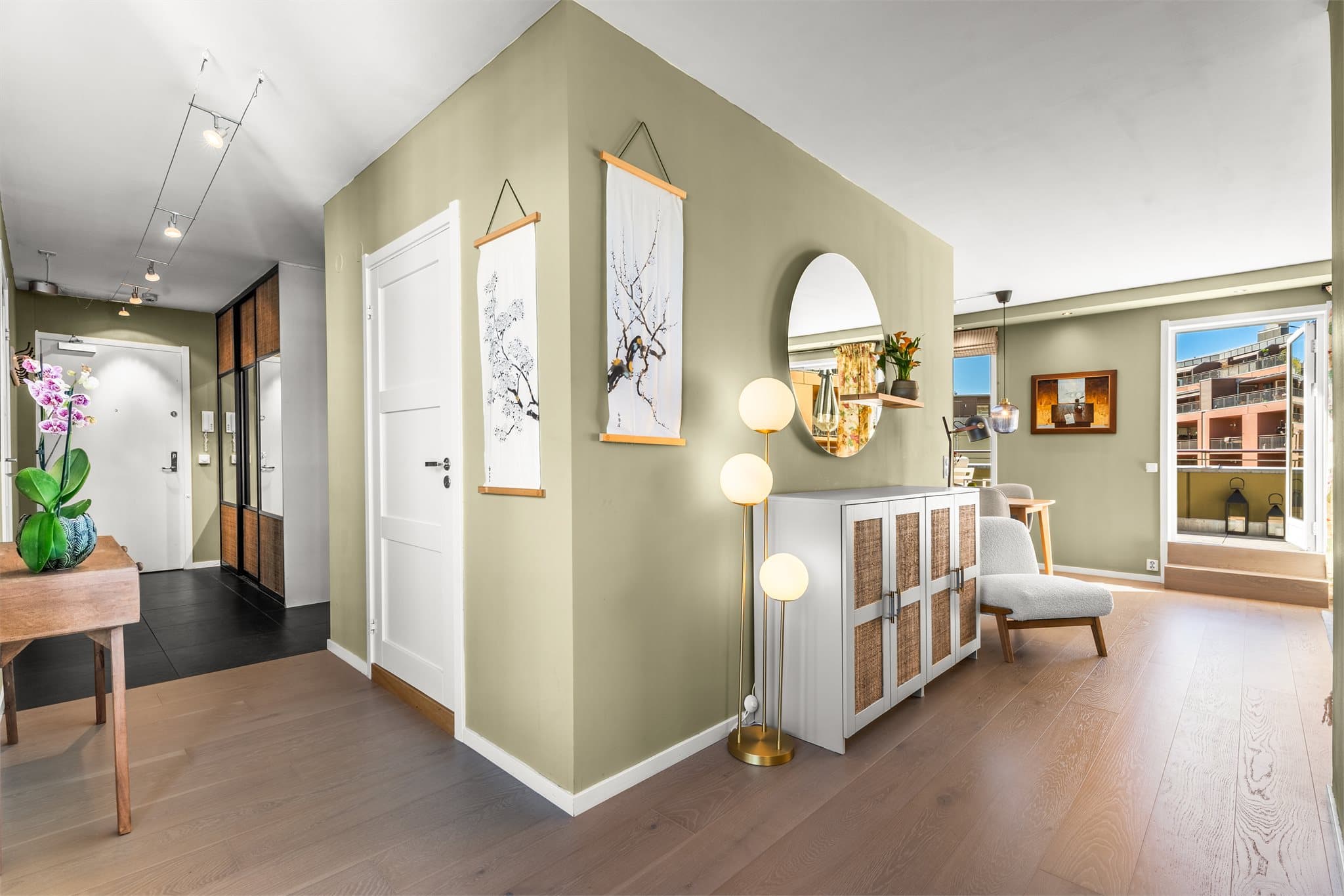 Dette er en gjennomgående toppleilighet i fjerde etasje, med heisadkomst som ligger plassert i første rekke mot Akerselva. Leiligheten har en effektiv planløsning med to store, nylig rehabiliterte verandaer som gir rikelig med privat uteplass. Standarden er gjennomgående god, med enstavs parkett og en takhøyde på 2,60 meter i de sosiale sonene. Entré: Entréen/gangen gir et godt førsteinntrykk av leilighetens standard, med praktiske fliser ved inngangspartiet etterfulgt av 1-stavs parkett. Her er det rikelig med oppbevaringsplass for sko og yttertøy i en plassbygget garderobeløsning, i tillegg til tilknytning til et praktisk omkledningsrom med gode skap- og hyllerløsninger. Fra gangen er det adkomst til soverom, bad samt utgang til én av leilighetens to verandaer før man føres videre inn til oppholdsrommet. Stue /kjøkken: Stue og kjøkken fremstår som et lyst og innbydende oppholdsrom i åpen løsning, med en god takhøyde på ca. 2,60 meter som gir en romslig og luftig atmosfære. Store vindusflater sørger for rikelig med naturlig lys, og skaper en behagelig romfølelse gjennom hele dagen. En stemningsfull gasspeis bidrar med både varme og hygge, og rommet har naturlige soner med god plass til både sofagruppe og spisebord. Deler av parkettgulvet ble fornyet i 2024. Fra stuen er det direkte utgang til leilighetens største veranda. Kjøkkenet er en integrert del av oppholdsrommet og har en praktisk L-formet innredning fra 2012, som gir gode arbeidsflater og effektiv utnyttelse av plassen. Innredningen har klassiske, profilerte fronter kombinert med laminat benkeplate og nedfelt komposittkum. Kjøkkenet er utstyrt med integrert induksjonstopp, stekeovn og oppvaskmaskin, samt frittstående kjøleskap med fryser. Det er også installert Waterguard i 2024, som gir økt trygghet mot vannlekkasjer. Veranda fra stue: Den største verandaen på ca. 17 m² fremstår som et særdeles innbydende og romslig uterom med svært gode solforhold. Her er det rikelig med plass til både lounge- og spisegruppe, noe som gir ideelle forhold for både avslapning og hyggelige sammenkomster. Verandaen oppleves som en naturlig forlengelse av stuen, og skaper en sømløs overgang mellom inne- og utearealer. Markise gir behagelig skjerming på varme dager, samtidig som de rolige omgivelsene og det gode utsynet bidrar til en privat og komfortabel atmosfære. Dekket er oppgradert med nye fliser i 2024, og en tilhørende utebod, også fra 2024, sørger for praktisk og lett tilgjengelig lagringsplass. Veranda fra gang: Den andre verandaen på ca. 10 m² har adkomst fra gangen og ligger østvendt med herlig morgensol, perfekt for rolige morgenstunder med kaffe i solen. Her får du en usjenert og behagelig utsikt mot grønne omgivelser samt Akerselva. Verandaen fremstår som en lun og privat uteplass, ideell for både avslapning og små pauser i hverdagen. Det er nylig lagt nye fliser, og det er oppført en ny utebod i 2024 i regi av sameiet, noe som gir både et oppgradert uttrykk og praktisk lagringsplass. Soverom: Leiligheten byr på to gode og fleksible soverom med fine innredningsmuligheter. Begge rommene har plass til seng og garderobeløsninger, og fremstår som lyse og funksjonelle. Hovedsoverommet har god størrelse med naturlig plass til dobbeltseng og tilhørende møblement, mens det andre rommet er allsidig og egner seg utmerket som barnerom, gjesterom eller hjemmekontor. Bad: Badet fremstår som lyst, delikat og funksjonelt, med en gjennomført og tidløs utforming. Her kombineres store, lyse flis-flater med dekorative detaljer. Opprinnelig fra byggeåret, men oppgradert i 2012 med nye fliser og moderne baderomsinnredning, gir rommet et pent og velholdt inntrykk. Badet er praktisk innredet med servant i romslig benkeskap, speil med belysning, vegghengt toalett og et pent dusjhjørne med innfellbare glassdører som gir god utnyttelse av plassen. I tillegg er det opplegg for vaskemaskin, noe som gjør rommet både funksjonelt og tilpasset en komfortabel hverdag. Lagring: Et praktisk, internt rom på ca. 3 m² gir fleksibel lagringsplass. Rommet fungerer fint som et omkledningsrom eller en innvendig bod. Sikringsskapet med automatsikringer er plassert her. Leiligheten disponerer to uteboder på ca. 1 m² hver, i tilknytning til hver sin veranda. Sameiet har etablert boder på fellesareal som leies ut til seksjonseierne. Nærmere regler om tildeling, varighet med videre fastsettes av styret. Overflater: Gulv: Enstavs parkett. Fliser i deler av entré/gang og på bad. Vegger: Sparklede og malte overflater, samt tapetserte vegger i soverom. Fliser på bad. Himling: Sparklede og malte plater, samt pusset og malt betong. Takhøyde i stue/kjøkken er målt til ca. 2,60 meter. For fullstendig teknisk informasjon om boligen, se punktet Byggemåte i salgsoppgaven.
