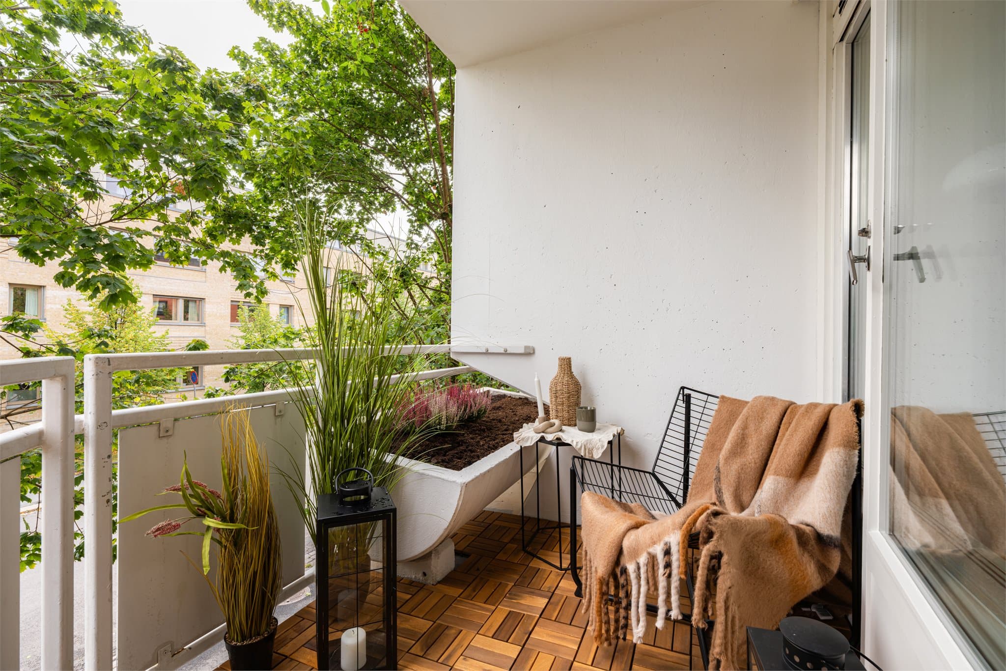 Entré Lys og innbydende entré med laminatgulv, malte gipsvegger og malt betong i himling. Her er det god plass til garderobeløsning og enkel tilgang til leilighetens øvrige rom. Soverom Romslig og behagelig soverom med laminatgulv, malte gipsvegger og malt himling. Plass til dobbeltseng, garderobe og tilhørende møbler. Et stille og lunt rom som gir en god ramme for hvile. Bad Stilrent og moderne bad med mørke fliser på gulv (20x20) og gulvvarme, samt hvite fliser (20x40) på vegger. Innfellbare dusjvegger og nedsenket gulv i dusjsone gir en praktisk og luftig løsning. Downlights i himling, servant med underskap, speil med integrert belysning og vegghengt wc. Opplegg for vaskemaskin er tilrettelagt. Kjøkken Moderne og funksjonelt IKEA-kjøkken med laminat benkeplate og rikelig skapplass. Stilsikker kombinasjon av varme trefronter og mørke overskap. Integrerte hvitevarer og praktiske løsninger gjør kjøkkenet både effektivt og innbydende. Stue Lys og luftig stue med laminatgulv og malte gipsvegger. Store vindusflater slipper inn rikelig med dagslys og skaper en behagelig atmosfære. God plass til sofagruppe og spisebord, perfekt for både hverdag og sosiale sammenkomster. Fra stuen er det utgang til en østvendt balkong på ca. 2,5 m². Omkledningsrom Praktisk og etterspurt ekstra rom som passer perfekt som garderobe, oppbevaringsrom eller hjemmekontor. Laminatgulv og malte gipsvegger. Balkong Østvendt balkong på ca. 2,5 m² med hyggelig utsikt. God plass til sittegruppe og beplantning – et perfekt sted å nyte morgenkaffen eller rolige kvelder.