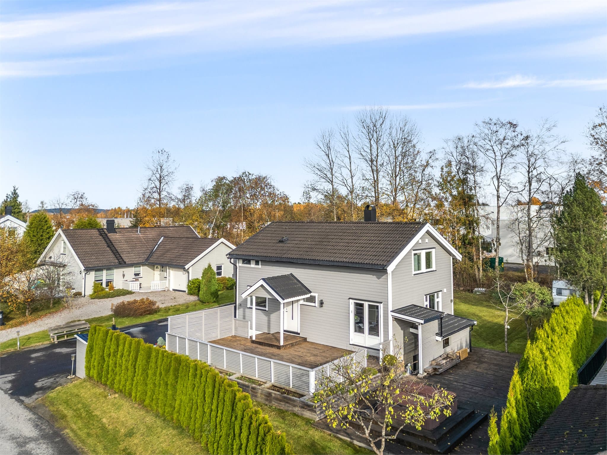 Bernhard Hansens veg 21 ligger i et attraktivt og barnevennlig område på Kløfta, med en perfekt kombinasjon av rolig boligmiljø og kort vei til alt familien trenger. Området har de siste årene gjennomgått store investeringer i skoler, barnehager og idrettsanlegg, noe som gjør det til et svært populært valg for barnefamilier. Pendling og kollektivtransport: For deg som pendler, ligger boligen svært praktisk til. Kun ca. 750 meter til Kløfta stasjon, hvor toget tar deg til Oslo S på ca. 35–40 minutter og til Oslo lufthavn på ca. 15 minutter. Flere bussruter stopper også i nærheten, noe som gjør hverdagen smidig selv uten bil, enten du skal til Lillestrøm, Oslo eller flyplassen. Skole og barnehage: Området har satset stort på barnefamilier. Bakke barneskole er nylig renovert og utvidet med nybygg, og tilbyr et moderne og inspirerende læringsmiljø. Den helt nye barnehagen i nærheten gjør hverdagen enklere for småbarnsfamilier, og Vesong ungdomsskole tar imot elever fra 8.–10. trinn. Bakkedalen – idrett og aktiviteter: Kun en kort spasertur unna ligger Bakkedalen, Kløftas flotte idretts- og aktivitetspark. Her finner du flere fotballbaner (hjemmebanen til Kløfta IL), flerbrukshall, klubbhus, parkour-anlegg, grillplasser og lekeplasser. Parken gir rom for både organisert trening og spontan lek, og er et naturlig samlingspunkt for barn og voksne i alle aldre. Service og handel: Kløfta har et godt utvalg av servicetilbud, inkludert dagligvarebutikker, apotek, kafeer og lokale butikker. Kløfta senter ligger i gangavstand, med butikker som dekker daglige behov, samtidig som større handel, kultur og opplevelser finnes i Lillestrøm og Oslo, lett tilgjengelig med tog eller bil. Eiendommen kombinerer fredelige omgivelser med kort vei til pendlerknutepunkt, skole, barnehage, idrett og service, og gir en perfekt ramme for et aktivt og sosialt familieliv.