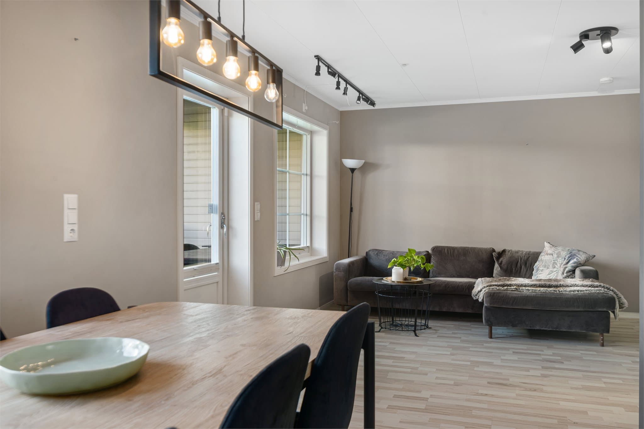 1.etg: Entré, gang, kjøkken/stue, 2 soverom, bad, bod Annet: Utvendig bod Borgenhagen 17 er en tiltalende og lys 3-roms endeleilighet beliggende i 1. etasje. Boligen fremstår med et moderne uttrykk og en funksjonell planløsning. Her får du romslige oppholdsareal, store vindusflater som gir godt med dagslys, samt carport i felles rekke med tilhørende elbillader. Leiligheten har en hyggelig entré med skyvedørsgarderobe. Fra gangen er det adkomst til begge soverom, baderom og øvrige oppholdsrom. Soverommene har fine størrelser og gir plass til både seng, garderobe og annet møblement. Vindusflatene sørger for gode lysforhold og en lun og behagelig stemning. Badet er et prefabrikkert baderom fra byggeår, utstyrt med vannbåren gulvvarme. Her finner du vegghengt toalett, dusjnisje og servantinnredning med oppbevaringsplass. Rommet er flislagt og har opplegg for vaskemaskin. Kjøkkenet ligger i åpen løsning mot spiseplassen, noe som gir en luftig og sosial atmosfære. Innredningen har lyse, profilerte fronter og gode arbeidsflater, og er utstyrt med frittstående hvitevarer som komfyr, kombiskap kjøl/frys og oppvaskmaskin. Stuen oppleves som lys og romslig, med plass til både sofagruppe og spisebord. De store vinduene slipper inn rikelig med dagslys og bidrar til en trivelig romfølelse. I tillegg disponerer leiligheten en praktisk utvendig bod på ca. 5 kvm