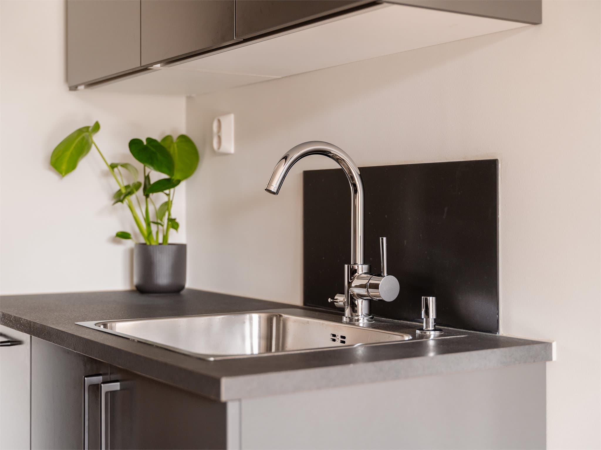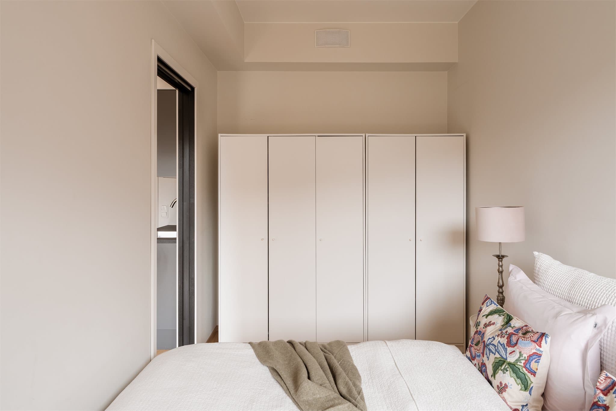 Entré - velkommen hjem! Praktisk og innbydende entré med lyse overflater som gir et rent og moderne uttrykk. Det er god plass til oppbevaring av yttertøy og sko, og området fremstår som ryddig og funksjonelt. Stue med kjøkken i åpen løsning Lys og innbydende stue med store vindusflater som slipper inn rikelig med naturlig dagslys. Stuen er arealeffektiv og gir plass til sofa med tilhørende TV-møblement, med en praktisk løsning for en hyggelig oppholdssone. Kjøkkenet er stilrent og funksjonelt, med glatte skapfronter og en laminat benkeplate. Kjøkkenet er godt utstyrt med integrerte hvitevarer som oppvaskmaskin, stekeovn, induksjonstopp og kjøl-/fryseskap, noe som gir en effektiv og brukervennlig hverdag. Baderom Badet er et prefabrikkert baderom med flislagte overflater og vannbåren gulvvarme, som gir god komfort. Det er dusj på gulv med dusjdører i herdet glass. Videre er badet utstyrt med servant med skuffeinnredning, samt vegghengt klosett med innebygget sisterne. Det er også opplegg for vaskemaskin. Soverom Lyst og rolig soverom med behagelige farger og god romfølelse. Det er plass til dobbeltseng med tilhørende møblement, samt gode oppbevaringsmuligheter i garderobe. Store vindusflater gir rikelig med naturlig lys og et hyggelig utsyn mot grønne omgivelser.