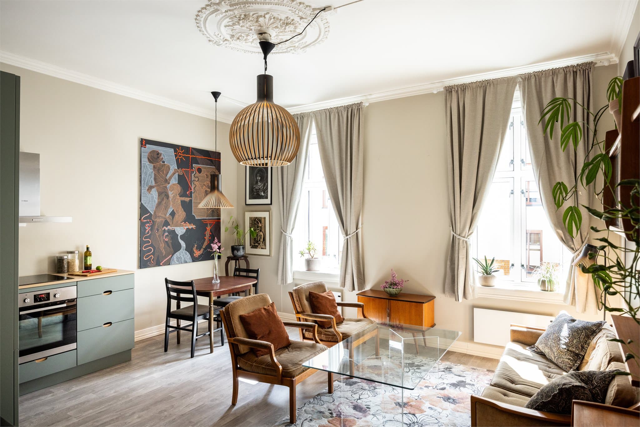 Klassisk og pen 3-roms rett ved Botanisk Hage | Kjøkken 2021 | Generøs takhøyde & Peis | Gjennomgående | Ingen dok.avg.