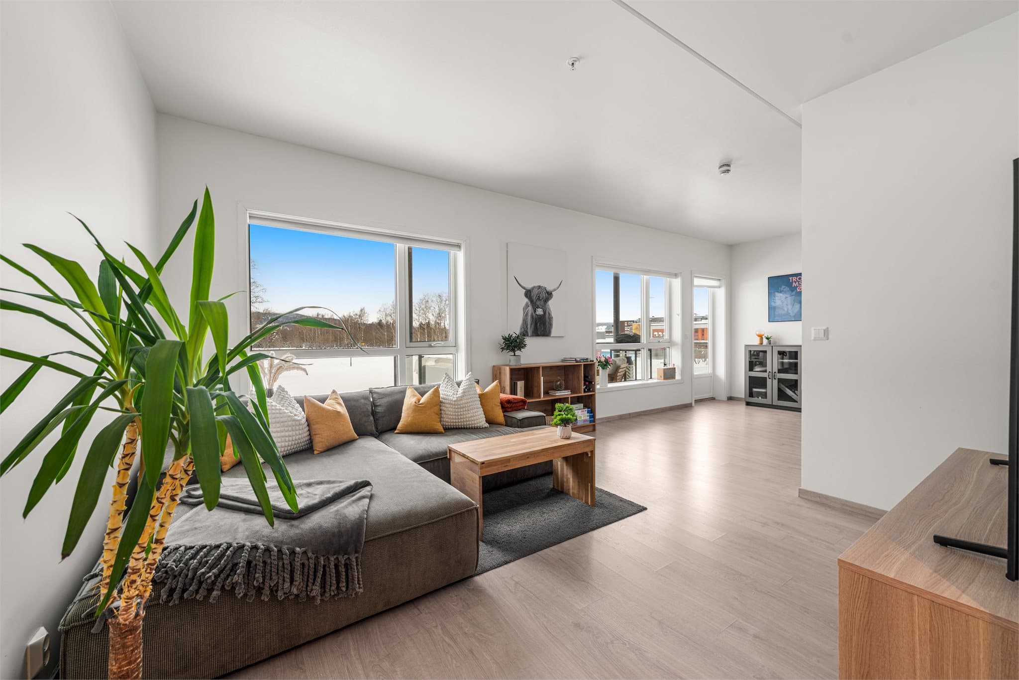 Velkommen til en romslig 2-roms hjørneleilighet med sentral beliggenhet i Nannestad sentrum. Leiligheten ligger i 2. etasje med heis og har en god planløsning og takhøyde som gir en luftig romfølelse. Store vindusflater sørger for rikelig med naturlig lys. Stue og kjøkken er samlet i en åpen løsning med god plass til både sofagruppe og spisebord. Kjøkkenet fremstår moderne og stilrent. Romslig soverom med plass til dobbeltseng og garderobe. Delikat baderom og innbydende entré med god oppbevaringsplass. Utgang fra stue til en nydelig balkong med åpent og fritt utsyn. Parkering i garasjeanlegg med mulighet for elbillader. Leiligheten disponerer både innvendig og utvendig bod. Fjernvarme og kommunale avgifter er inkl i felleskostnadene. En attraktiv 2-roms med høy bokvalitet!