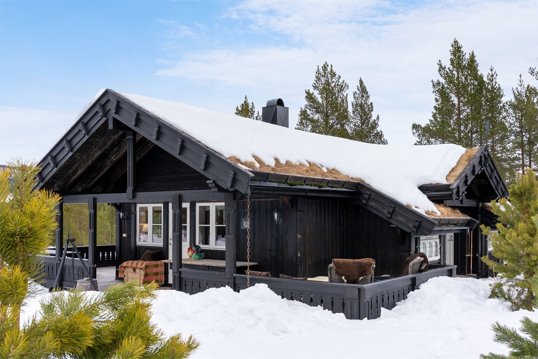 Eiendommen ligger usjenert til med gode solforhold og vid utsikt over omkringliggende fjell- og naturområder. Med en tomt på hele 1 996 m² får storfamilien rikelig med plass til uteområder, aktiviteter og hyggelige stunder. Her finnes både anneks og garasje, og muligheten for å bygge en tilleggende hytte gjør eiendommen unik. Inngangsparti og entré Når du kommer inn, møtes du av et innbydende inngangsparti som gir et godt førsteinntrykk. Den romslige entréen har god plass til oppbevaring av yttertøy og sko. To praktiske utvendige boder ved inngangspartiet sikrer ekstra lagringsplass. Stue Stuen er lys og luftig med store vindusflater som slipper inn rikelig med dagslys og gir flott utsikt mot naturen. Peisovnen skaper varme og hygge på kalde vinterdager, og med varmepumpe installert i 2022 er komforten på topp året rundt. Stuen har utgang til en stor, solrik terrasse på 55 kvm som strekker seg rundt hytta og gir plass til flere soner med utemøbler. Dette blir et naturlig samlingspunkt for familie og venner. Kjøkken og spisestue Kjøkkenet ligger i en egen sone, delvis åpent mot stuen, og er lyst, moderne og praktisk. Med rikelig skapplass, integrerte hvitevarer og store arbeidsflater er det enkelt å lage mat til storfamilien. Mellom kjøkken og stue er det plass til en hyggelig spisegruppe, og utgang til terrassen gjør det lett å nyte måltider ute på solrike dager. Soverom Hytta har totalt tre soverom, alle med god plass til dobbeltseng og ønsket møblement. Hovedsoverommet på 8,5 kvm fremstår lunt og koselig. De to andre soverommene kan enkelt tilpasses behov, enten som barnesoverom, gjesterom eller kontor. Fra stuen er det også stige opp til hems med ekstra oppbevaringsmuligheter. Bad Badet er flislagt og har dusjhjørne, servant, toalett og opplegg for vaskemaskin. Her er alt tilrettelagt for praktisk hverdagsbruk, samtidig som rommet har en velholdt standard. Anneks og garasje Like ved hytta ligger annekset på ca. 19 kvm, perfekt for gjester eller ekstra rom til storfamilien. Her er det gjesterom med lun stemning og god plass til overnatting. Eiendommen har også en romslig garasje med plass til bil og lagring, samt en praktisk vedbod. Uteområder Den store tomten byr på mange muligheter, fra lek og aktiviteter til hyggelige stunder i solen. Skigard ble satt opp i 2020/2021, og med solrik terrasse, opparbeidet hage og naturskjønne omgivelser ligger alt til rette for en aktiv og avslappende fritid. Den store tomten gir også muligheter for å bygge en tilleggende hytte på eiendommen.