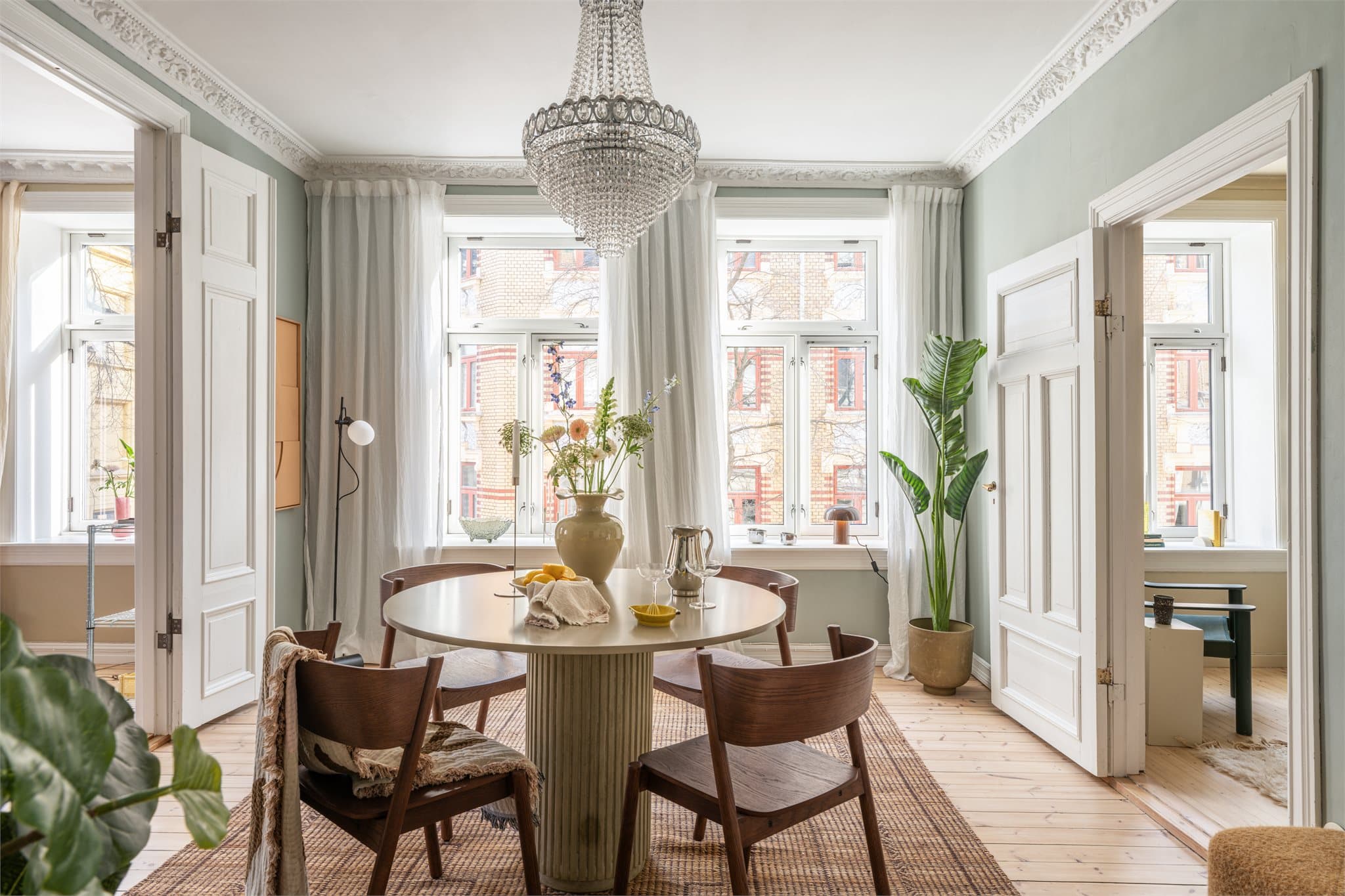 Vakker, klassisk og gjennnomgående 3R hjørneleilighet med skjermet bakgård | To stuer, god takhøyde og vedovn