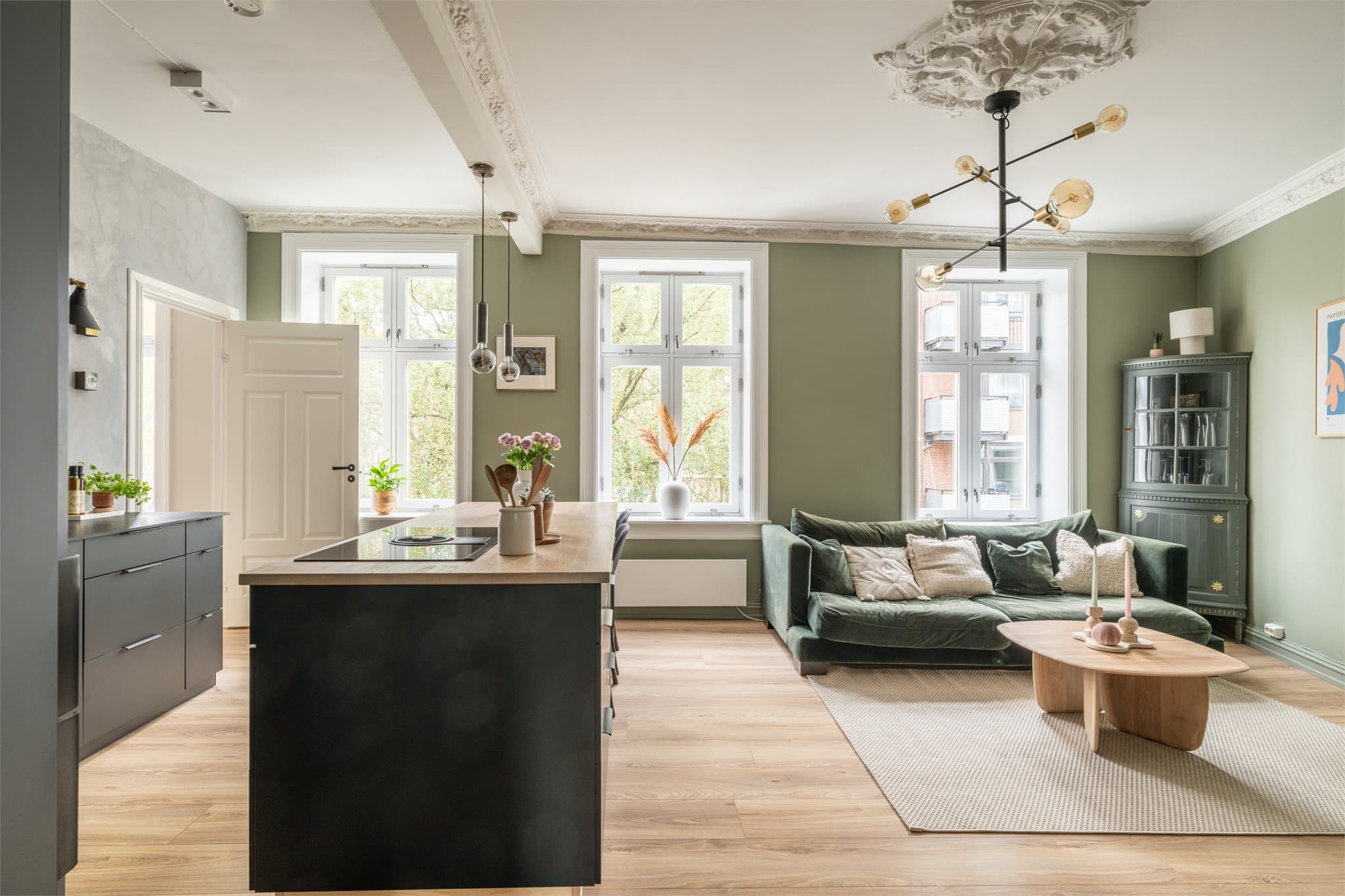 Klassisk, smakfull 3-roms (65 m²) i ærverdig bygård | Rosett, stukkatur og god takhøyde | Vestvendt balkong og peisovn