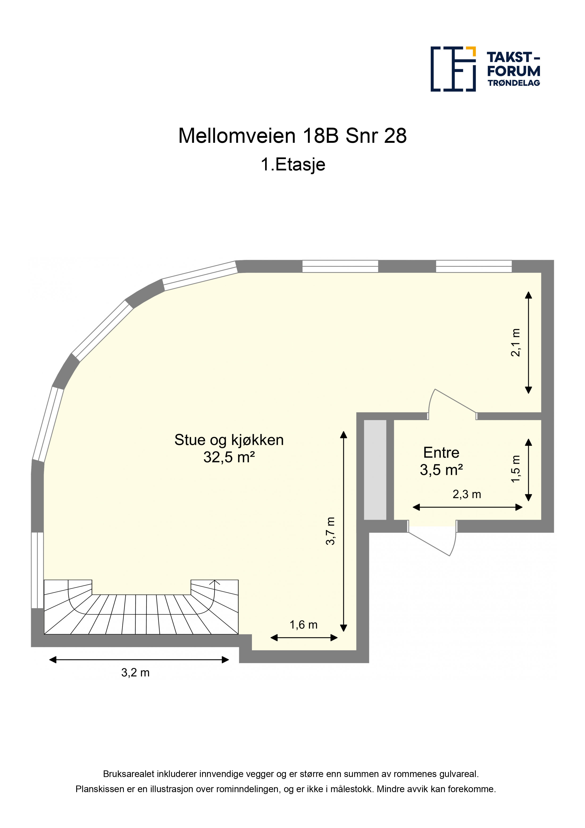BRA-I: 37 m² Entre, stue/kjøkken