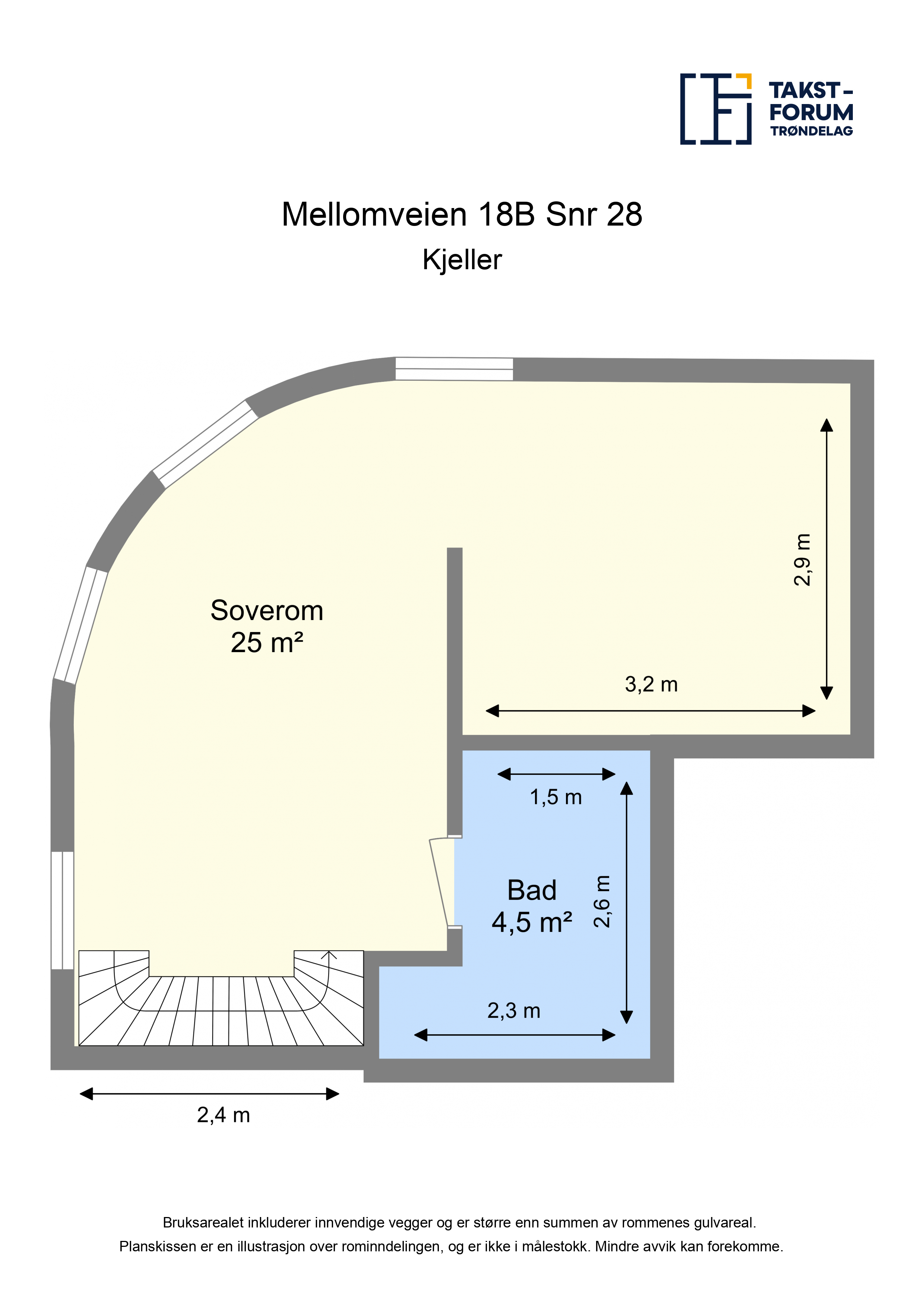 Det gjøres særskilt oppmerksom på at boden som er medtatt i BRA-e og totalt BRA, ligger på sameiets fellesareal, men disponeres av denne seksjonen. Sameiet kan på et senere tidspunkt omdisponere bruken av dette arealet.