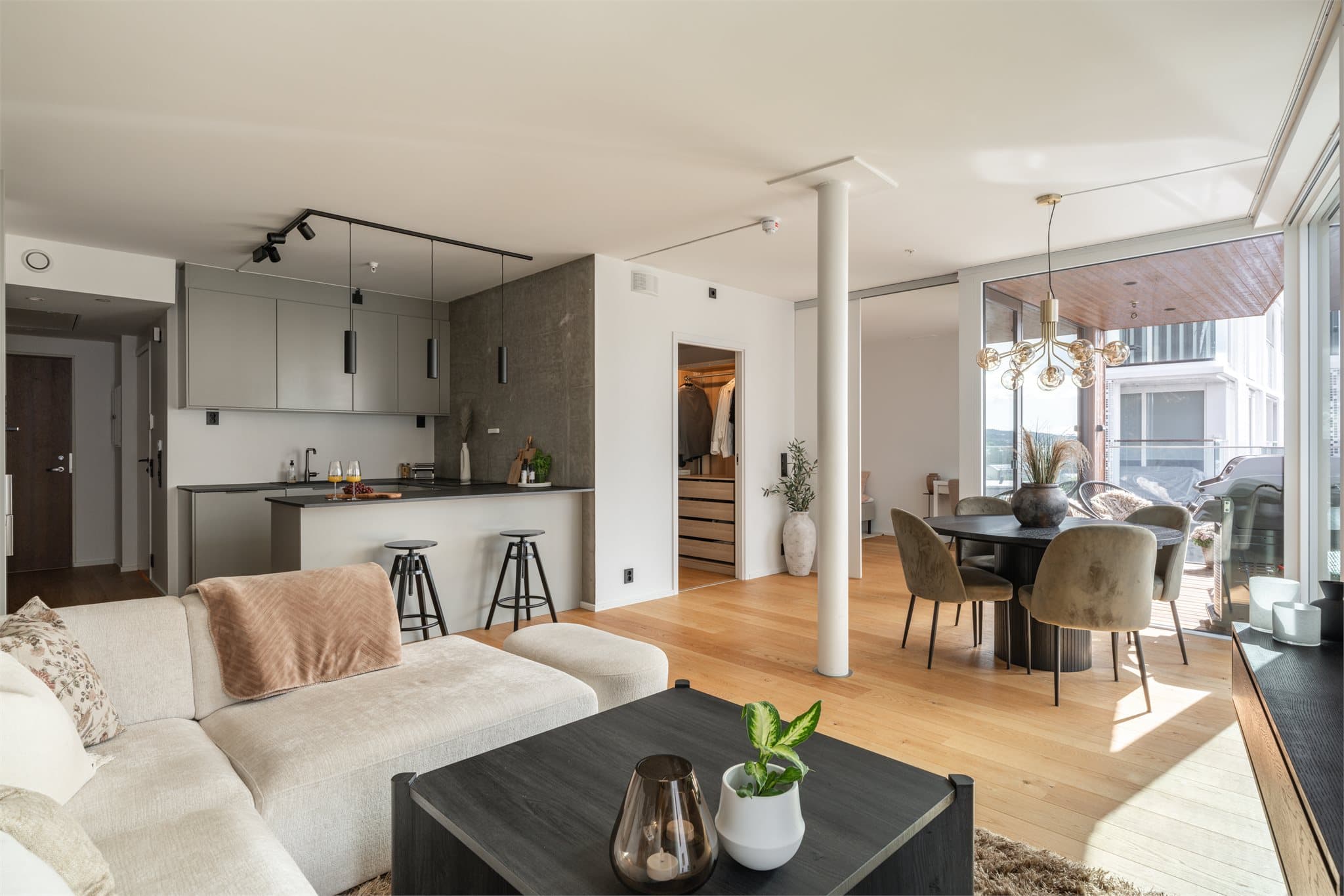 Eksklusiv 3-roms selveier fra 2023 | Høy standard og solrik balkong | Vannbåren gulvvarme i alle rom | LUX | Garasjeleie