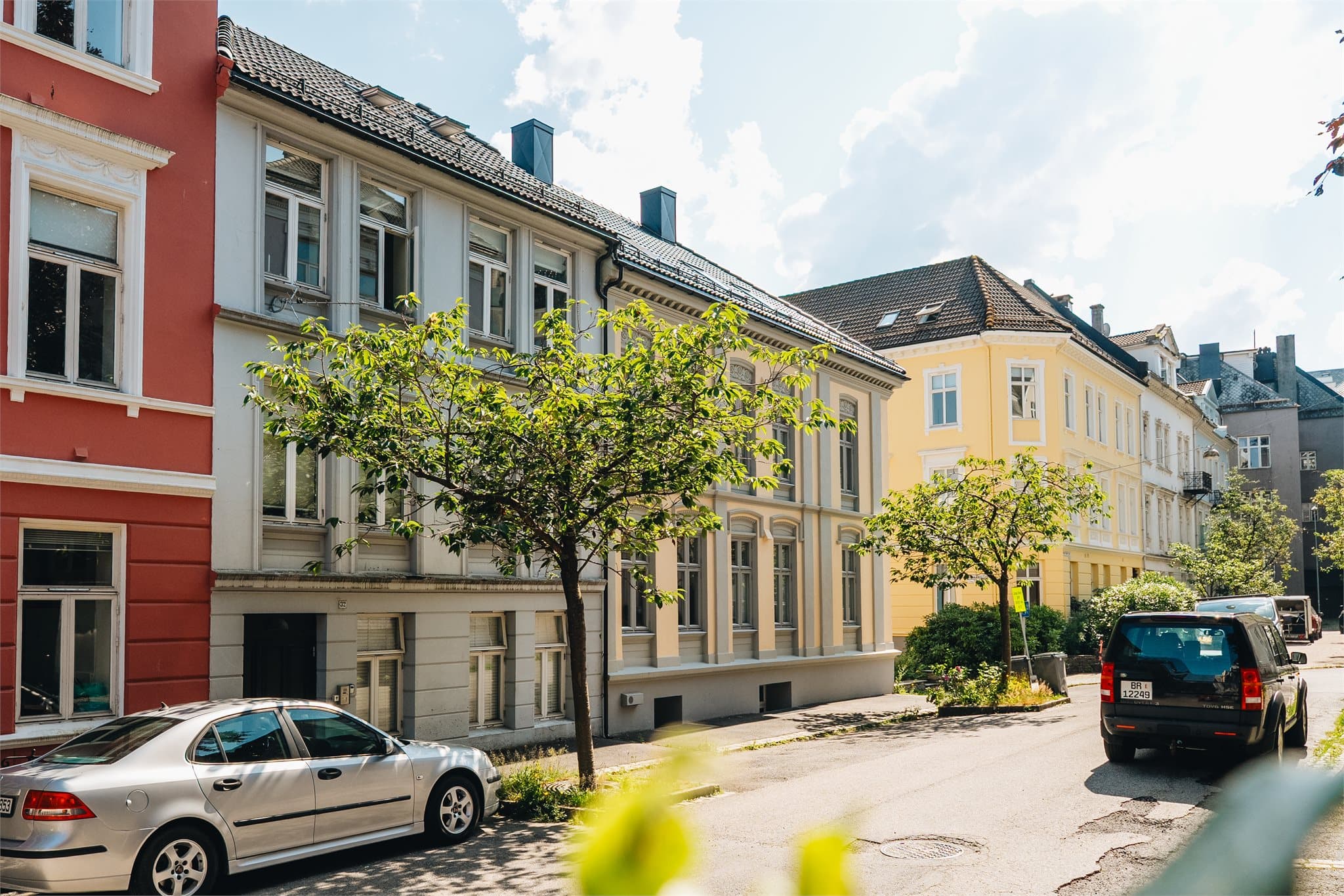 I Fredrik Meltzers gate 32 er du i hjertet av byen, men likevel skjermet fra det mest hektiske bylivet. Bare et par minutters gange unna ligger Grieghallen, og fortsetter du derfra åpner sentrum seg opp - med Lille Lungegårdsvann, Festplassen og hele byens kulturliv og butikker rett foran deg. Enten du skal på forelesning eller jobb, finner du det aller meste i gangavstand. Universitetet i Bergen ligger like ved, og det samme gjør Media City, Studentsenteret og Juridisk Fakultet. Skal du til BI på Møhlenpris, er det bare en kort, ti minutters spasertur unna. Det er også kort vei til både Høgskulen på Vestlandet og Haukeland - og for enkel transport har du Nygård bybanestopp like i nærheten. I tillegg ligger både bussforbindelser og Bergen togstasjon i umiddelbar nærhet, som gjør det enkelt å komme seg rundt. I nabolaget finner du flere hyggelige spisesteder og kaféer, perfekt for både raske hverdagslunsjer og lange helgekvelder. Når du trenger å handle, har du både Rema 1000, Kiwi og Bunnpris innen få minutters gange. Søndagsåpne alternativer finnes også, og hvis du er ute etter noe ekstra, ligger Bergen Storsenter bare et steinkast unna - med alt fra vinmonopol til spesialbutikker. For deg som liker grønne pustepauser, er Nygårdsparken en nydelig perle midt i byen. Her samles folk i alle aldre for å nyte solen, gå tur med en kaffe i hånden eller møte venner ved bystranden like nedenfor BI. Den frodige parken gir deg akkurat det pusterommet man ofte savner midt i byen - og den ligger kun noen minutters spasertur unna. Like ved finner du også det vakre Store Lungegårdsvann, perfekt for joggetur- eller gåtur, hvor du kan nyte rolige spaserturer rundt vannet og vakre omgivelser - en perfekt kombinasjon av natur og byliv. Vil du trene, har du mange muligheter i nærheten. Studentsenteret på Nygårdshøyden har både idrettshall, svømmebasseng og treningsstudio, og like ved finner du også SiB City - det mest populære treningssenteret blant byens studenter. Ønsker du mer variasjon, ligger SATS og Barry's Bootcamp i kort gangavstand. Og trenger du frisk luft og motbakker, er Fløysvingene en liten oppvarmingstur unna - der starter noen av Bergens vakreste turløyper. Her bor du med kort vei til det aller meste - og med følelsen av å være midt i byen, men likevel ha alt du trenger i en rolig og tilrettelagt hverdag. Fredrik Meltzers gate 32 gir deg mer enn bare en sentral adresse - den gir deg selve byen rett utenfor døren.