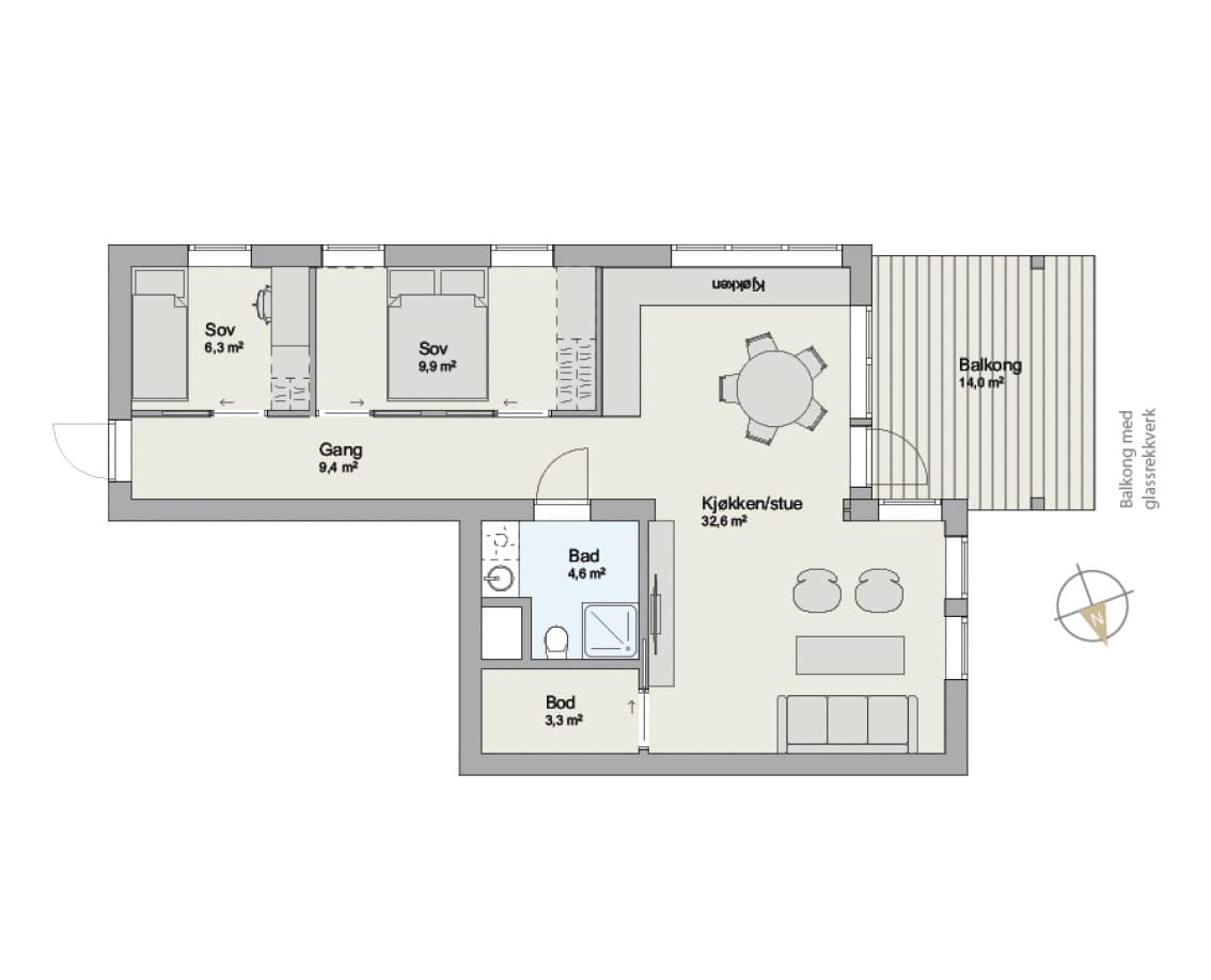 NY og rålekker 3-roms selveier | Stor balkong på 8 kvm | Mulighet for garasjeleie* | ingen forskudd | 5 år garanti