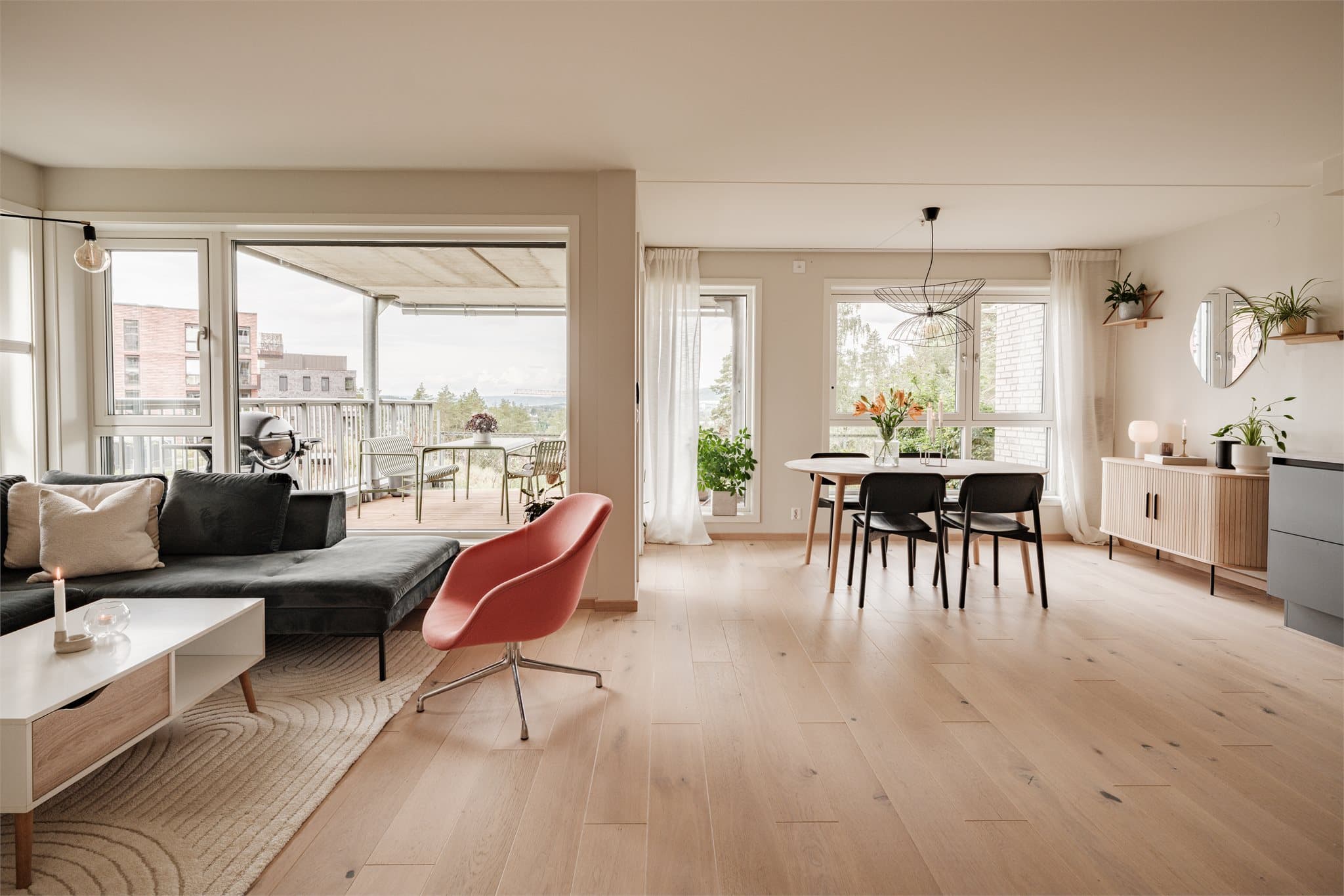 Milad Alexander Sabori v. Emera Eiendomsmegling ønsker velkommen til Toppen 13. Velkommen til en stilfull og moderne bolig med gjennomgående kvalitetsmaterialer og smakfullt design! Den romslige entréen kombinerer elegante fliser og eikeparkett, med god lagringsplass bak tre speildører. Boligen har to lyse soverom, hovedsoverommet med direkte utgang til en solrik platting på hele 32 m². Praktisk innvendig bod, lekkert bad med varme i gulv og dusjløsning med innfellbare glassvegger. Det grønne HTH-kjøkkenet med integrerte hvitevarer åpner opp mot en luftig stue med utgang til en vestvendt platting på ca. 20 m². Her her man sol store deler av dagen, egen p-plass m/EL, et stilfullt bad og kjøkken og to gode soverom for å nevne få av mange gode kvaliteter. Velkommen!