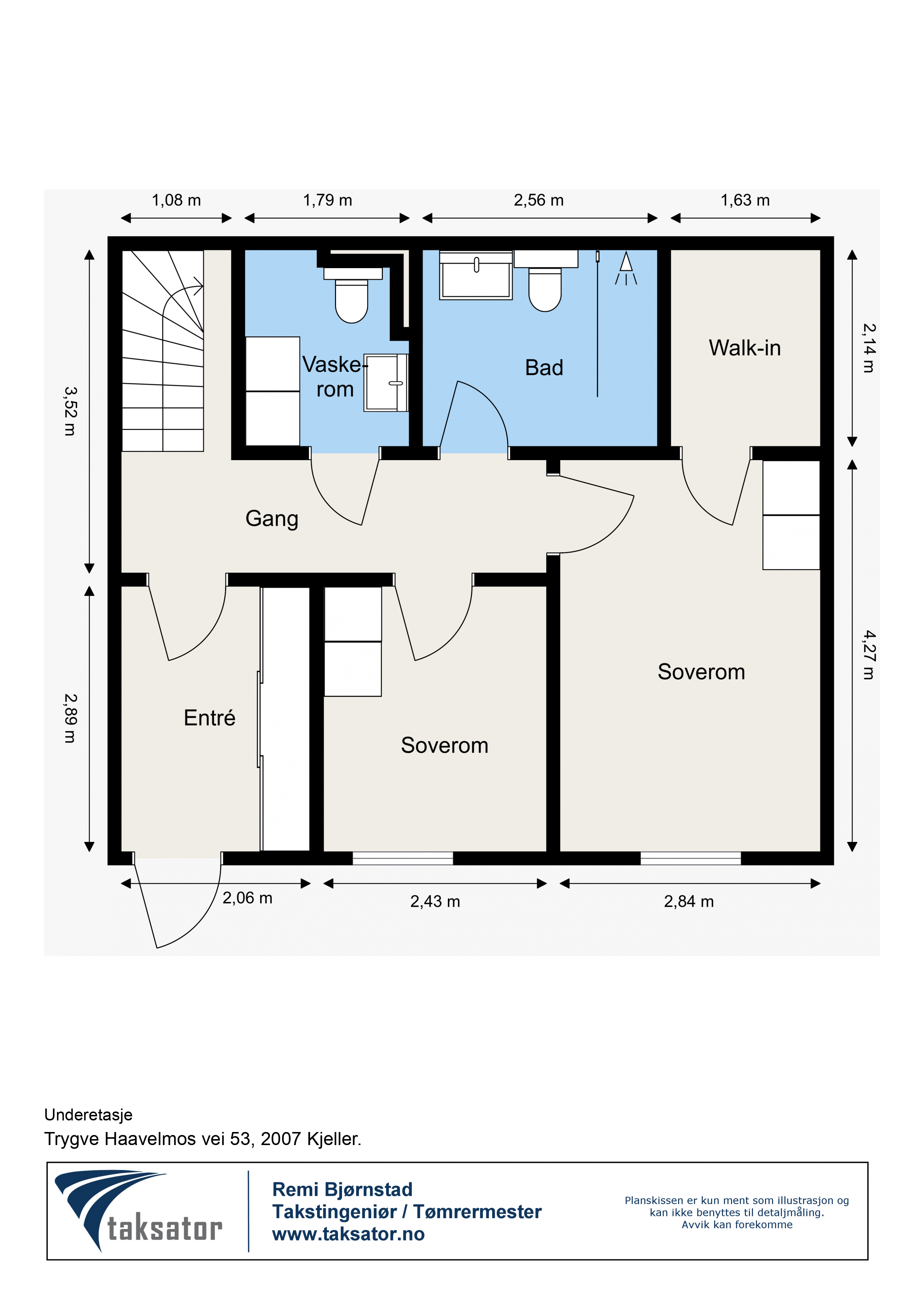 BRA-I: 50 m² Entré, toalett/vaskerom, 2 soverom, omkledningsrom, bad