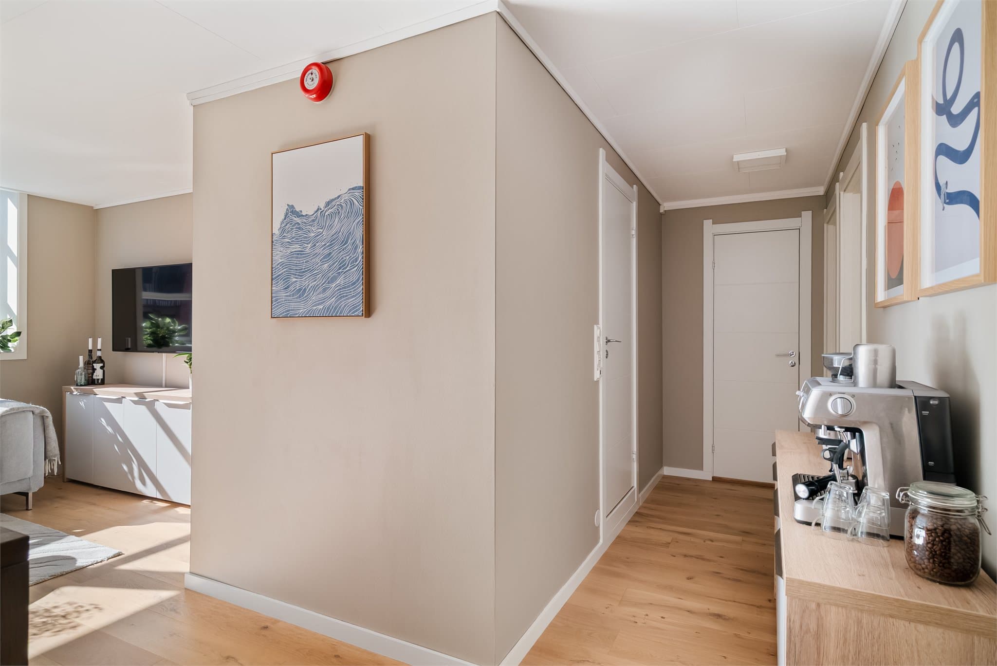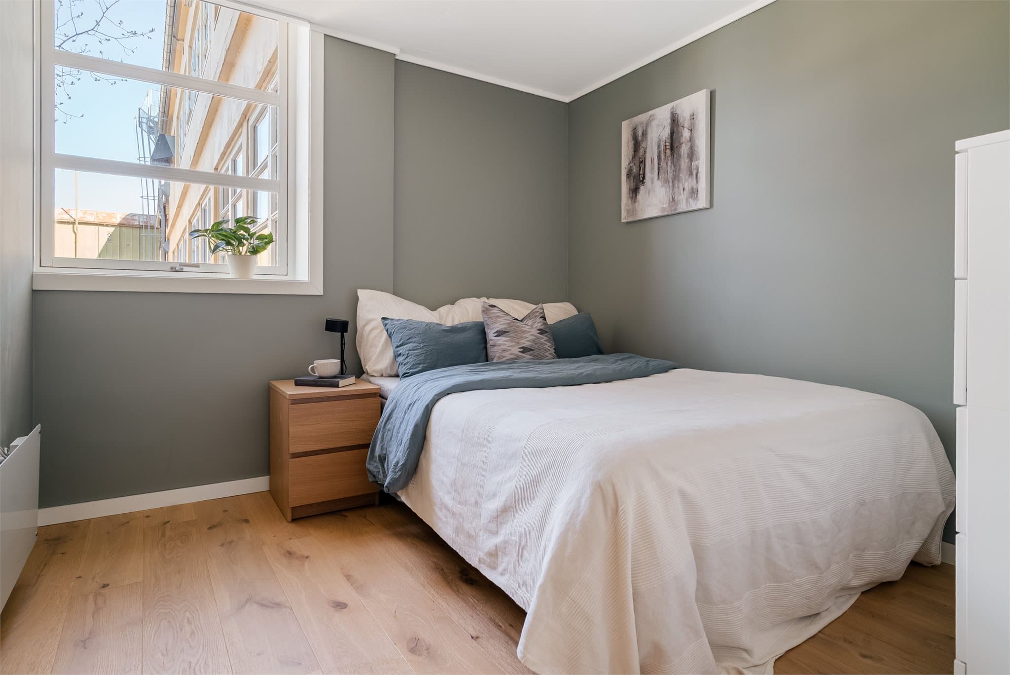 Velkommen hjem! Entré Man ønskes velkommen inn i en innbydende entré med gode muligheter for praktisk oppbevaring av yttertøy og sko. Entréen gir et ryddig og godt førsteinntrykk. Stue Romslig og lys stue med store vindusflater som sørger for rikelig med naturlig lysinnslipp. De dype vinduskarmene gir flotte muligheter for personlig innredning og et moderne, urbant uttrykk. Stue og kjøkken ligger i åpen løsning og måler totalt ca. 29 kvm inkl. gang, med god plass til både sofagruppe. Kjøkken Lekkert og moderne kjøkken oppgradert i 2021 med glatte fronter, rikelig skap- og benkeplass samt overskap som går helt opp til himlingen. Kjøkkenet er utstyrt med integrert stekeovn, mikrobølgeovn, vinskap, vaskemaskin, koketopp og kjøleskap. Platetoppen har integrert omluftsvifte med kullfilter, en stilren og plassbesparende løsning. Bad Pent baderom pusset opp i 2020/2021 med stilrene fliser, dobbel servant og romslig dusjnisje med innebygde hyller for oppbevaring. Det er også opplegg for vaskemaskin. Toalettrom Praktisk separat toalettrom, oppgradert i 2020/2021 samtidig med badet. Rommet fremstår moderne med elegante og gjennomførte detaljer. Soverom Leiligheten har fire soverom med moderne fargevalg og store vindusflater som gir godt med naturlig lys. Rommene har plass til dobbeltseng og garderobeløsning, og kan enkelt tilpasses som soverom, kontor eller hobbyrom etter behov. Fellesarealer Borettslaget disponerer en hyggelig felles bakgård med sittegrupper og bålpanne, et flott sted for sosiale sammenkomster og avslapning.