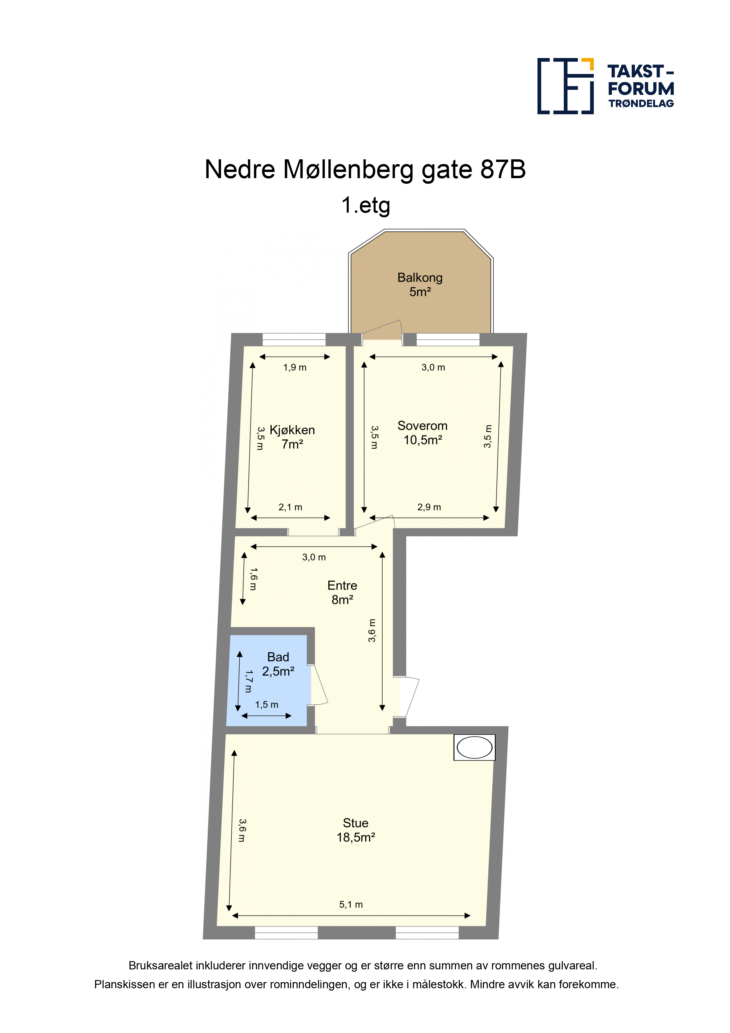 Emera Eiendomsmegling ved Adrian Dyrstad ønsker velkommen til Nedre Møllenberg gate 87B! En pen og innbydende 2-roms leilighet i høy 1. etasje på populære Møllenberg. Stuen har store vindusflater og peisovn, mens kjøkkenet ligger separat og måler 9 kvm. Badet ble totalrenovert i 2018 og fremstår moderne. Leiligheten har gode oppbevaringsmuligheter med integrert skyvedørsgarderobe og tre boder. Leiligheten har en sørøstvendt balkong med gode solforhold, samt tilgang til en pent opparbeidet felles hage med lysthus og sitteplasser. Her bor du meget sentralt, med kort vei til både dagligvare, kollektivtransport og Solsiden. Høydepunkter: - Nytt bad fra 2018 - Sørøstvendt balkong m/gode solforhold - Kabel-TV/internett og varmtvann inkl. - Mulighet for P-plass - 3 boder - Peis