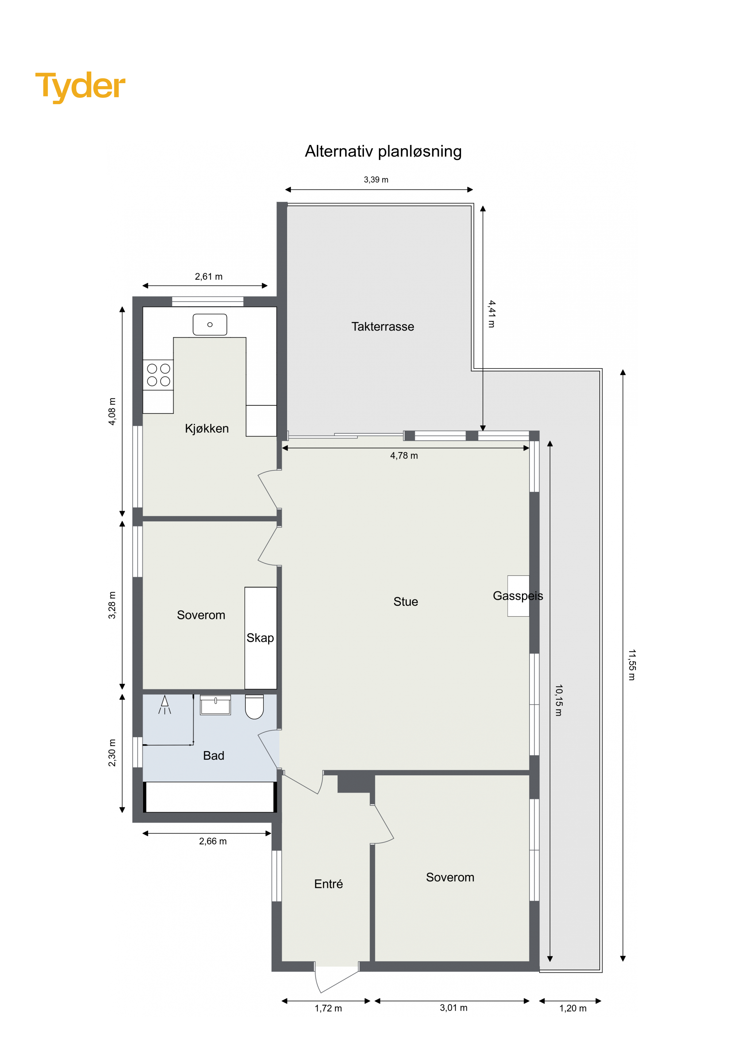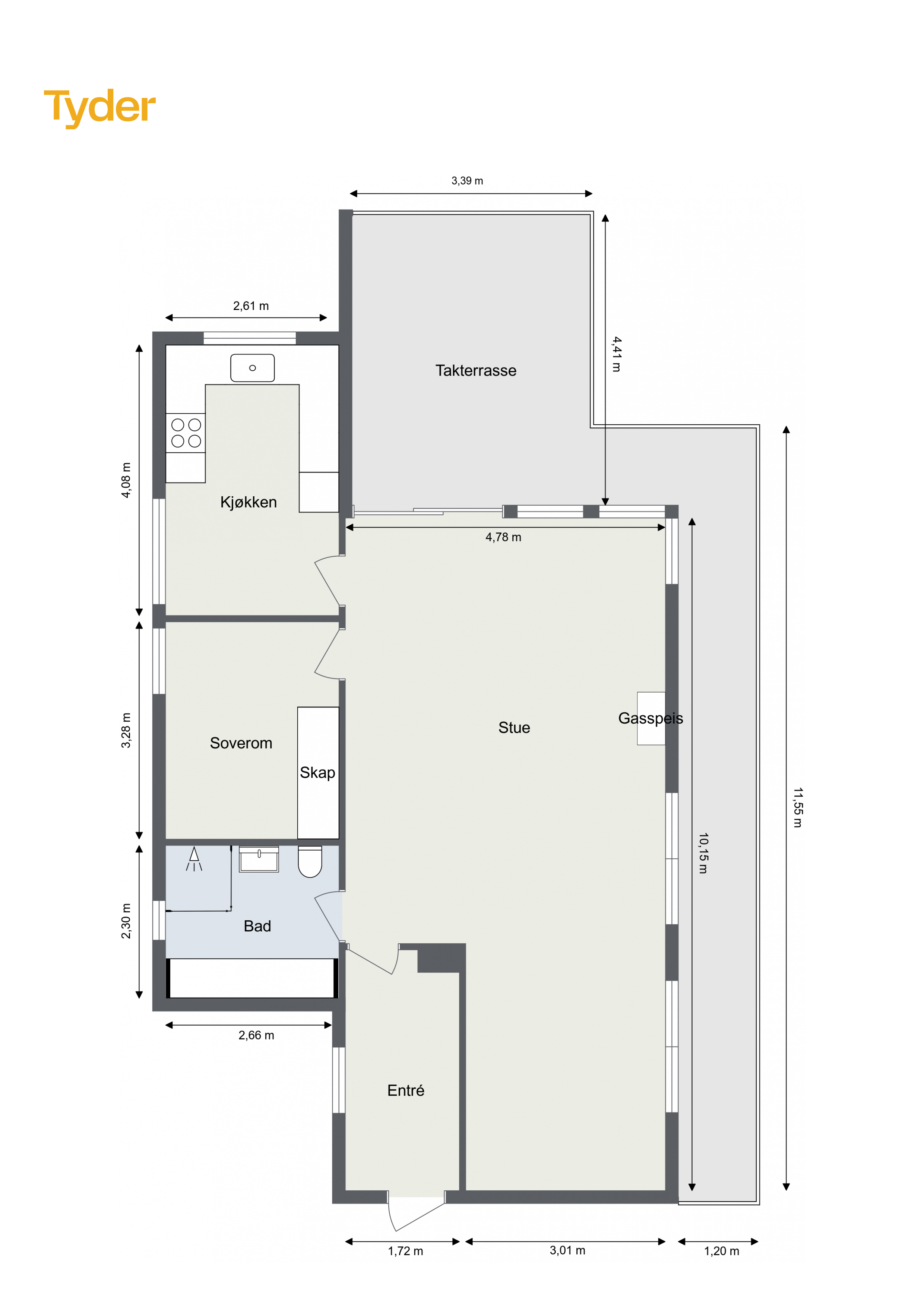 BRA-I: 78 m² Entré, kjøkken, stue, soverom, bad