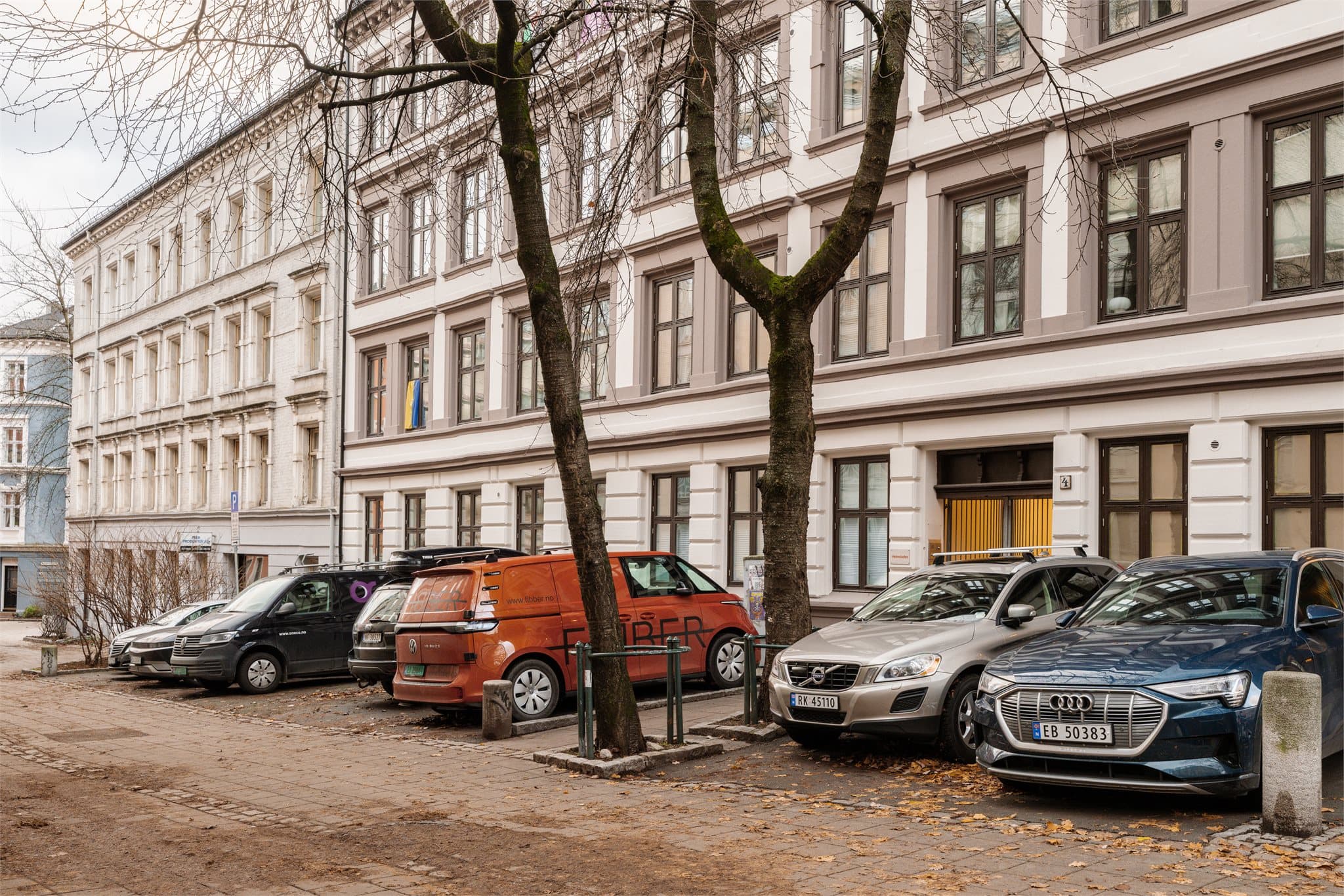 Det er beboerparkering tilgjengelig i området. Med beboerparkeringstillatelse kan man parkere hele døgnet, også utover eventuell maksparkeringstid, på plasser reservert for beboere. Gjeldende priser for beboerparkering i bydelene Frogner, St. Hanshaugen, Gamle Oslo, Grünerløkka og Sagene – innenfor sonene A, B, C, D og E – er som følger: - Bensin-, diesel- og hybridbiler samt ladbare hybrider: kr 6.200 per år - Motorsykler og mopeder: kr 3.100 per år - Elbiler: kr 2.090 per år - El-motorsykler og el-mopeder: kr 1.045 per år Det tas forbehold om endringer i prisene. For oppdatert informasjon, se:oslo.kommune.no – beboerparkering