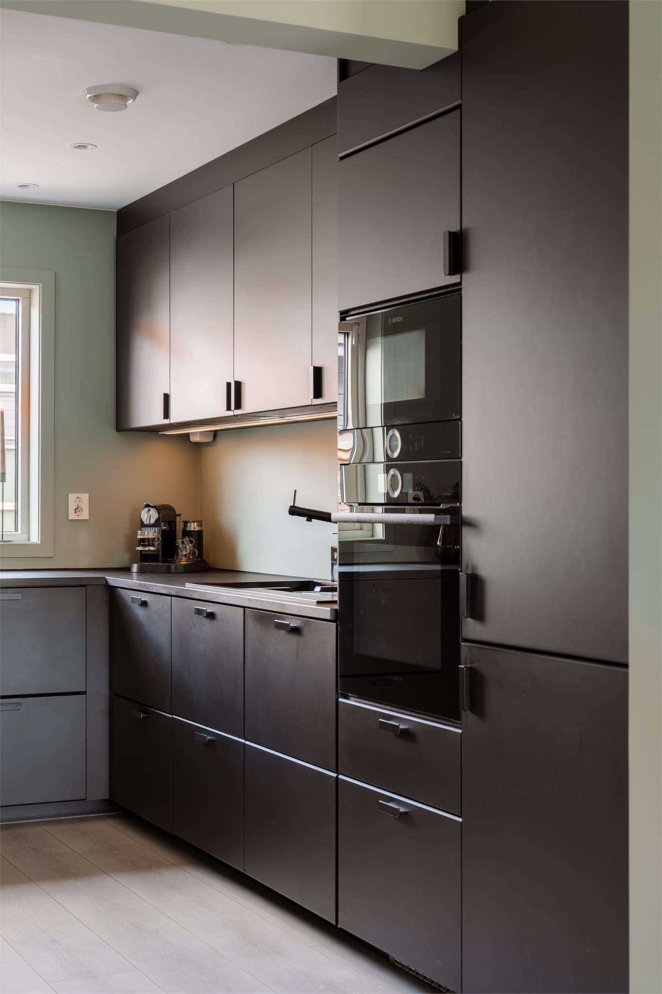 Dette er et moderne og innholdsrikt rekkehus fra 2012, tilpasset en aktiv familiehverdag. Boligen er pusset opp de siste årene med nytt kjøkken i 2019, nye gulv i 2021 og malte soverom i 2025. Planløsningen er praktisk, med en åpen og sosial førsteetasje og en privat soveromsavdeling med fire gode soverom i andre etasje. Fra andre etasjen er det tilgang til et loft via takluke. Entré: Brostein leder frem til et takoverbygget inngangsparti. Her er det anlagt en liten, skjermet platting på ca. 7 m² med plass til en hyggelig uteplass med morgensol. Langs brosteinen ligger også praktisk plassert én av de to eksterne utebodene. Entréen har flislagt gulv med varmekabler som gir en behagelig velkomst. Her er det gode oppbevaringsmuligheter for yttertøy og sko i en praktisk skyvedørsgarderobe. Rommet oppleves lyst og åpent. Stue, spisestue og kjøkken: Første etasje har en åpen og funksjonell planløsning der stue og spisestue glir naturlig over i hverandre, med gode soner for møblering. Store vindusflater sørger for rikelig med dagslys og gir rommet en lys og luftig atmosfære. Spisestuen har god plass til et langbord, og en sentralt plassert peis bidrar til både varme og trivsel. Stuen har rom for en komfortabel sofagruppe og har direkte utgang til en romslig terrasse og videre til hagen. Kjøkkenet fra 2019 har et moderne uttrykk med mørke, glatte fronter og benkeplate i laminat. Innredningen er U-formet og gir gode arbeidsflater samt rikelig med skap- og oppbevaringsplass. Alle hvitevarer er integrerte, inkludert platetopp, stekeovn, mikrobølgeovn, oppvaskmaskin og kjøl-/fryseskap. For økt trygghet er det installert både komfyrvakt og Waterguard. Kjøkkenet ligger i åpen løsning mot spisestuen og bidrar til en sosial og praktisk sone. Terrasse og hage: Fra stuen er det direkte utgang til en romslig markterrasse på ca. 39 m² og videre til egen hage. Uteområdet fremstår som skjermet og privat ved hjelp av en plantet hekk. Her er det gode solforhold og god plass til flere sittegrupper, grill og hyggelige sosiale sammenkomster. Terrassen fungerer som en naturlig forlengelse av stuen og gir flotte muligheter for både avslapning og lek i rolige omgivelser. Hagen gir i tillegg ekstra boltreplass for både store og små, og legger til rette for et aktivt og trivelig uterom gjennom hele sesongen. Bad 1. etasje: Badet i første etasje er fra byggeåret og har flislagte vegger og gulv med varmekabler. Rommet er utstyrt med dusjhjørne, toalett, servantinnredning og speil med belysning. Det er også praktisk tilrettelagt med opplegg for vaskemaskin og tørketrommel. Fra badet er det adkomst til en innvendig bod, ideell for oppbevaring av blant annet vaskerelaterte artikler. Andre etasje: En trapp leder opp til andre etasje, som samler alle soverommene og boligens andre bad. Gangen binder rommene sammen. Det er ikke montert håndløper på vegg i trappeløpet. Soverom: Boligen har fire gode soverom i andre etasje, noe som gir en praktisk adskillelse mellom private og sosiale soner. Hovedsoverommet har plass til dobbeltseng og nattbørsmøblement og har utgang til en egen privat balkong. De tre øvrige rommene er av gode størrelser og har fleksible bruksmuligheter, enten som barnerom, gjesterom eller hjemmekontor. Rommene er enkle å møblere og gir plass til både seng, skrivebord og garderobeløsninger med god oppbevaringskapasitet. Balkong2. etasje: Balkongen utenfor hovedsoverommet måler ca. 5 m² og gir et privat uteområde i høyden med plass til koselige sittegruppe. Her er det flott utsikt utover mot lekeplasser, grøntområder og nærliggende åser, som understreker de trygge og familievennlige omgivelsene. Rekkverket på terrassene er lavere enn dagens krav. Bad 2. etasje: Badet er fra byggeåret 2012 og fremstår som tidløst og velholdt. Rommet er helfliset i lyse, nøytrale toner på veggene som gir et rent og harmonisk uttrykk. Downlights i taket sørger for behagelig og jevn belysning, som sammen med speilbelysning. Badet er utstyrt med et praktisk dusjhjørne med glassvegger, toalett og en stilren baderomsinnredning med heldekkende servant og gode oppbevaringsmuligheter. Løsningen er både funksjonell og plassbesparende, og gir et ryddig og helhetlig preg. Overflater: Gulv: Laminat (lagt nytt i 2021) i oppholdsrom og soverom. Fliser i entré og på begge bad. Vegger: Sparklede og malte overflater. Fliser på begge bad Himling: Sparklede og malte overflater. Lagring: Boligen har en innvendig bod i første etasje og et gangbart loft med adkomst via loftsluke. I tillegg er det to utvendige boder på henholdsvis 2,3 m² og 5 m² ved inngangspartiet. Parkering: To garasjeplasser i felles garasjekjeller medfølger, hvorav den ene har elbillader. For fullstendig teknisk informasjon om boligen, se punktet Byggemåte i salgsoppgaven.