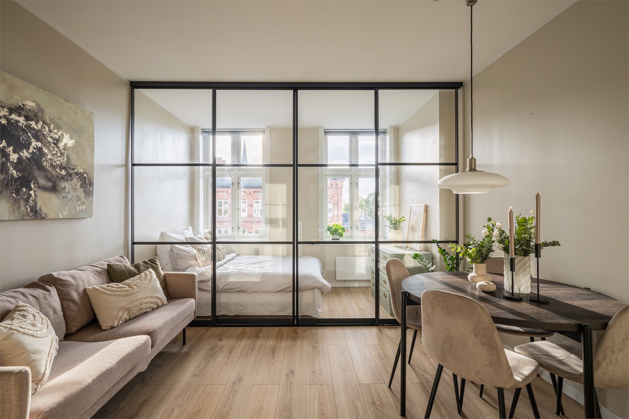 Lys og gj.gående 1-roms med moderne standard og hyggelig bakgård | Skjermet balkong på 4 kvm | Lave omk. | Ingen forkjøp