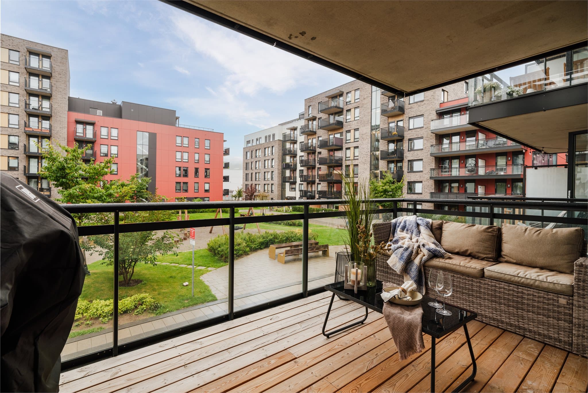 Milad Alexander Sabori v/Emera Eiendomsmegling ønsker velkommen til en elegant 3-roms fra 2022 med god standard. Boligen ligger sentralt i Lillestrøm, med gangavstand til tog, buss, butikker og servicetilbud. Leiligheten befinner seg i 2. etasje med heis, og har en god plassering i bygget. Her kan du nyte solen og utsikten fra en romslig balkong på ca. 10 kvm vendt mot grønne omgivelser. Det er åpen stue- og kjøkkenløsning med moderne innredning, pent flislagt bad med vannbåren gulvvarme, samt to delikate soverom. Til leiligheten følger garasjeplass nr. 143 med elbillader, praktisk kjellerbod og IN-ordning for fellesgjeld. En innbydende bolig med komfortable løsninger, perfekt for deg som ønsker å bo tilbaketrukket, men sentralt. Ved innfrielse av FG vil felleskostnader være 3 691,-.