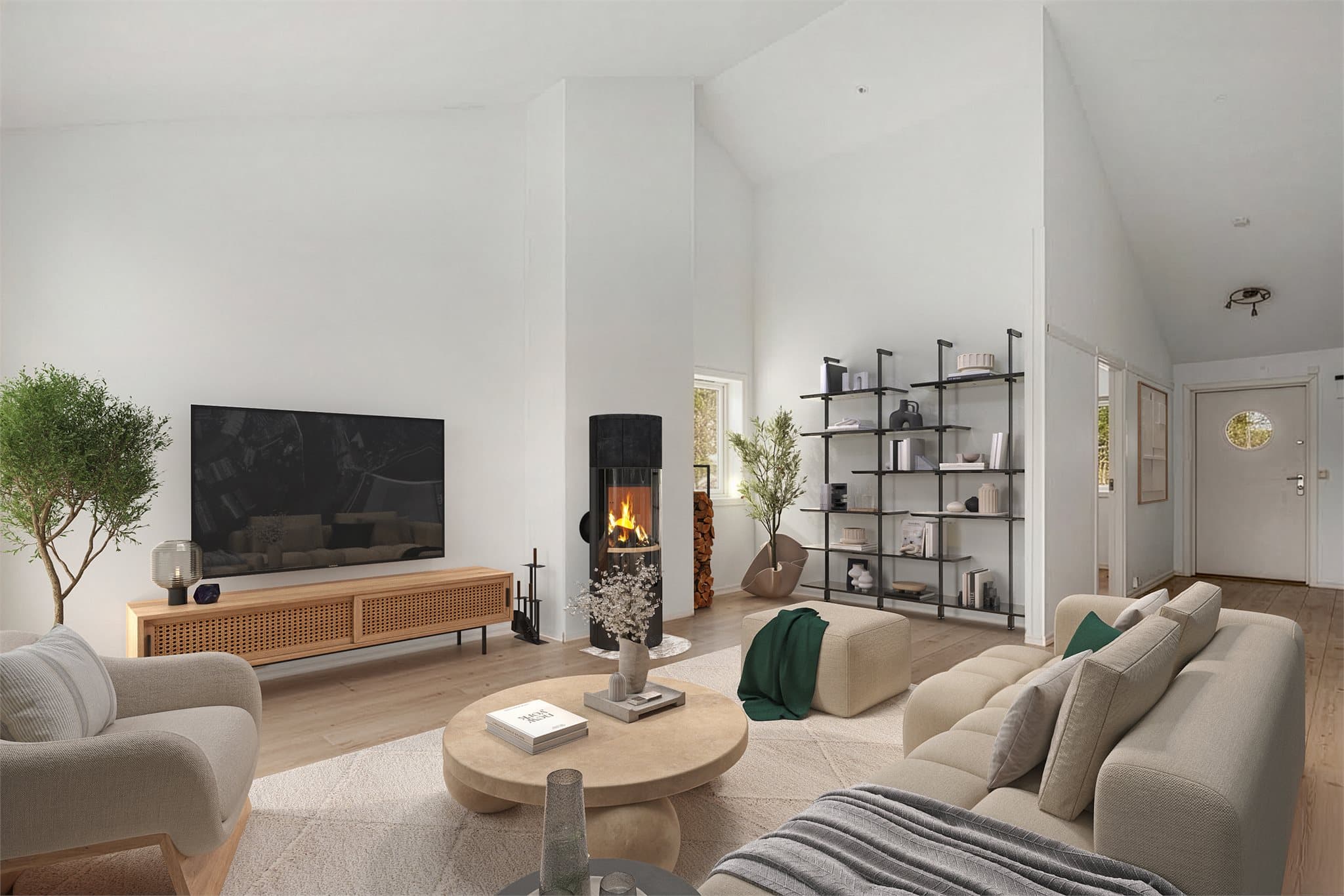 Tomten er omkranset av variert vegetasjon, som skaper en naturlig og frodig ramme rundt eiendommen.