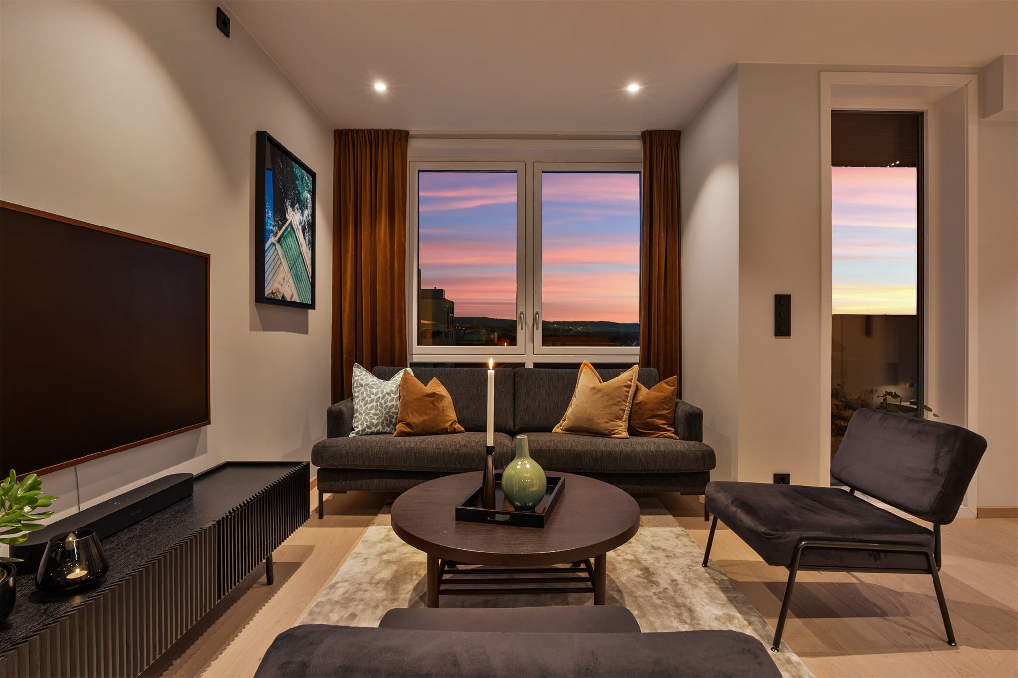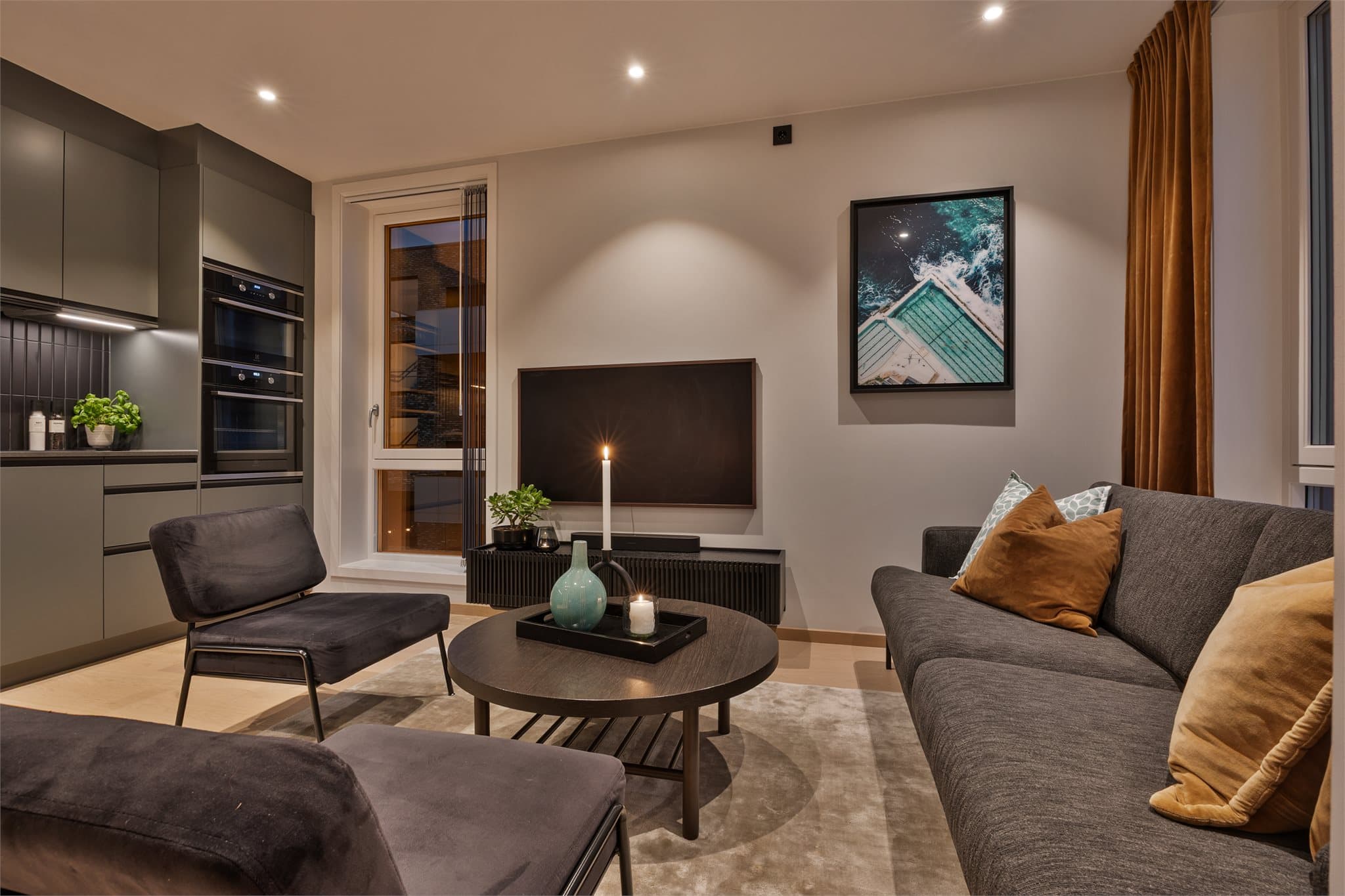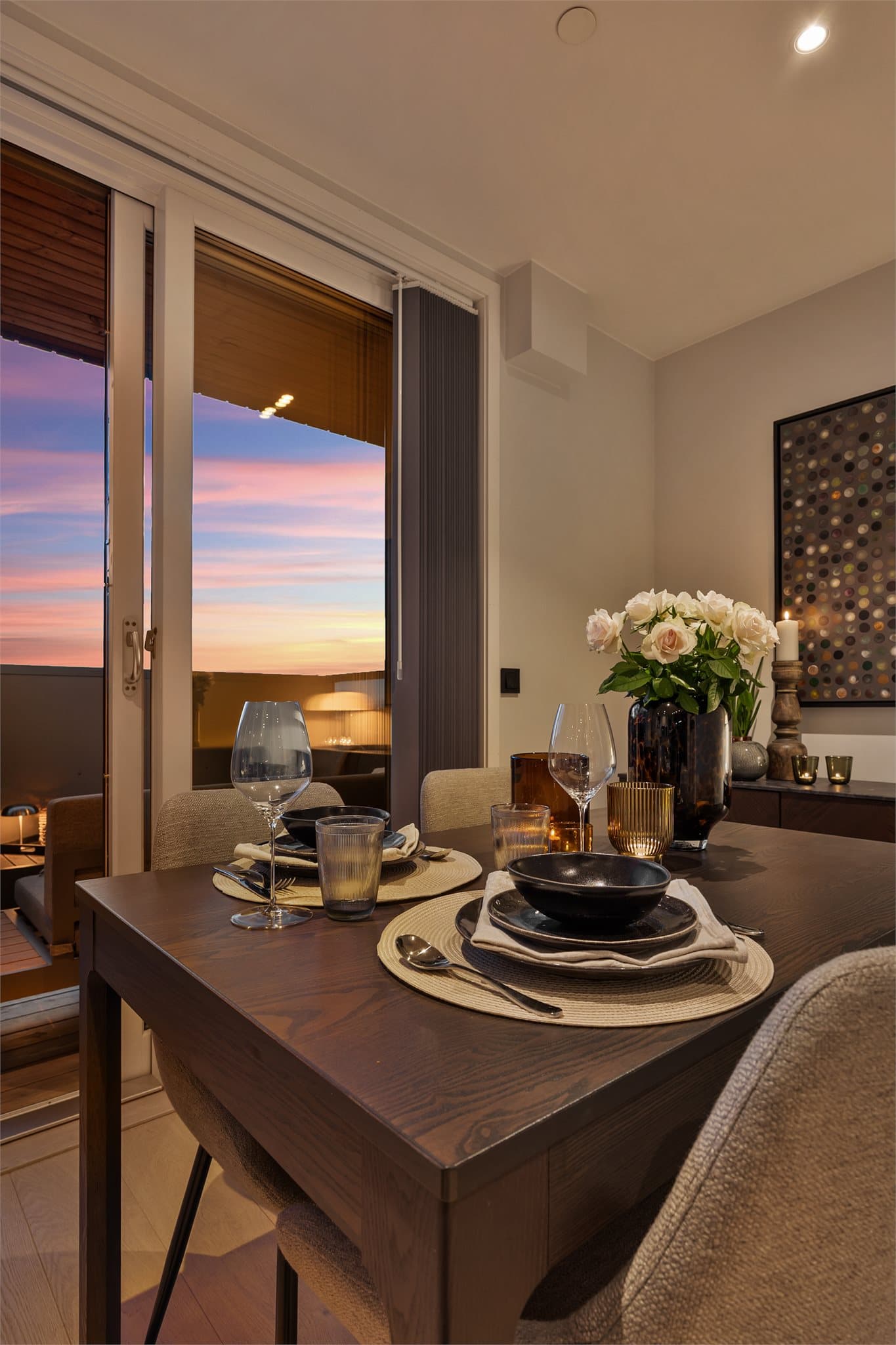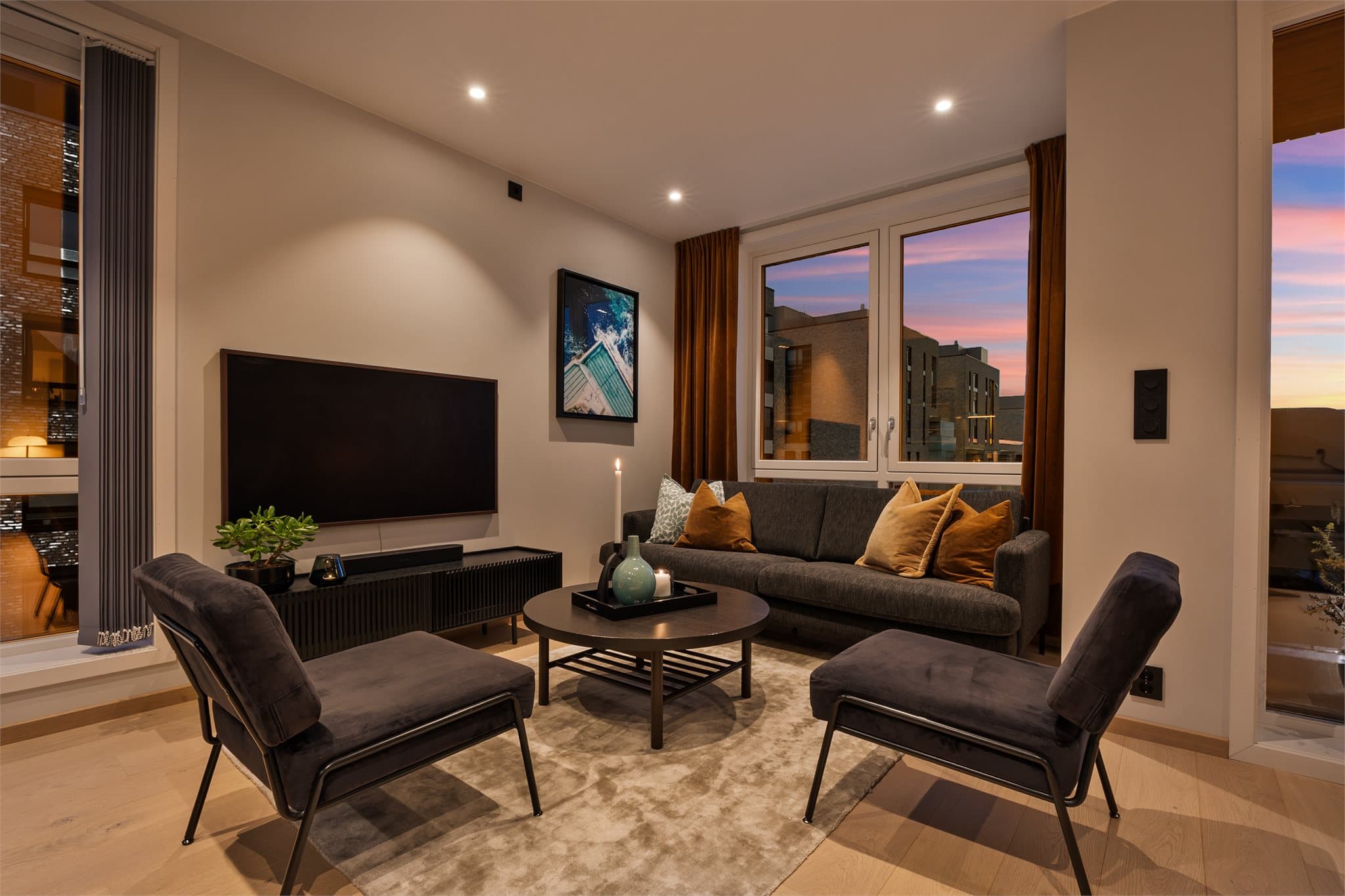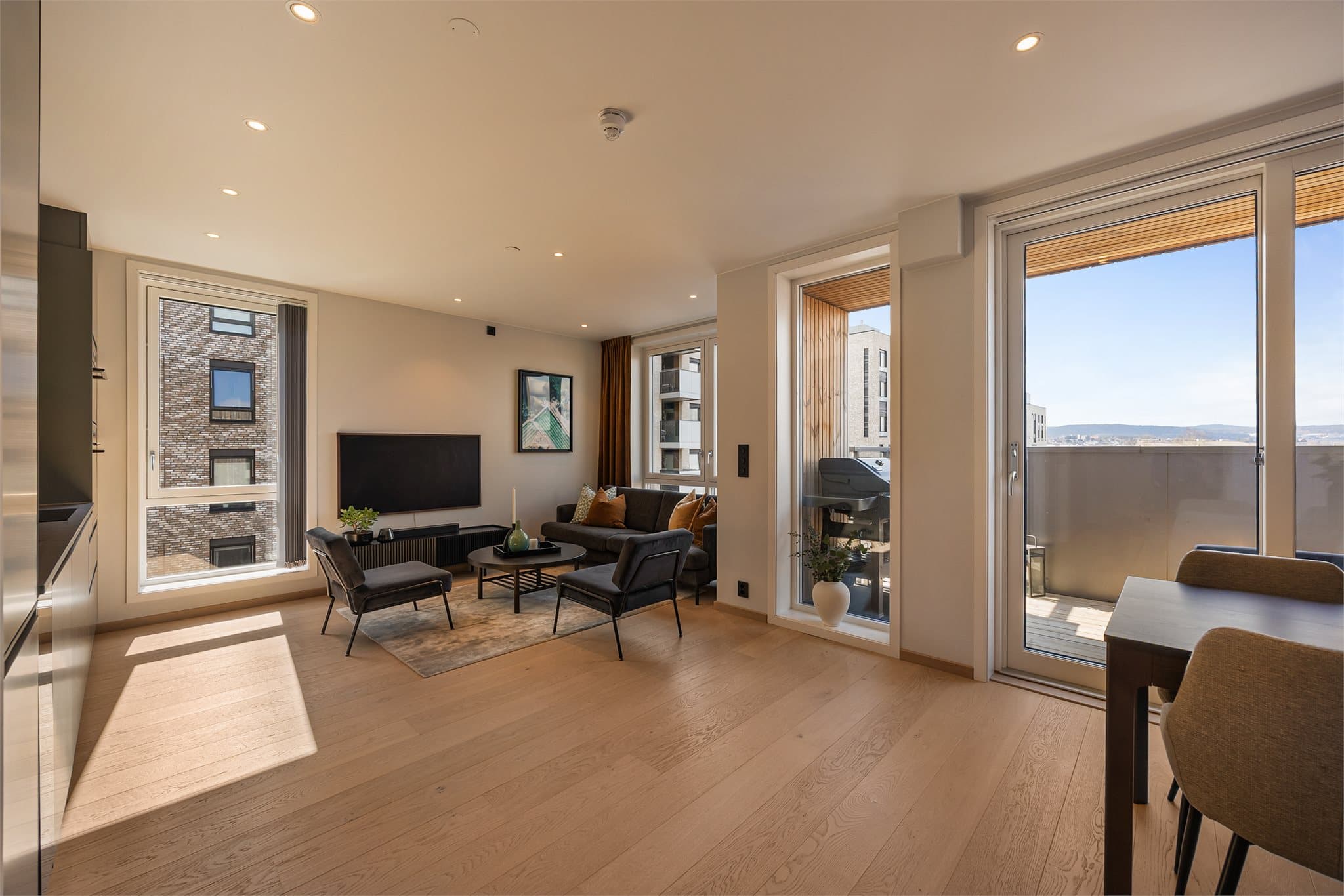 Påkostet og lekker 2(3)-roms selveierleilighet fra des. 2022 i 5.etasje | Vestvendt balkong med utsikt