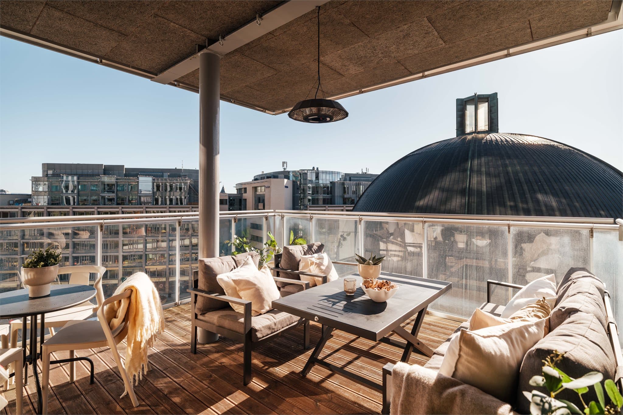 Lys og romslig hjørneleilighet i 6.etg fra 2017 med solrik balkong på 18 kvm. Heis. To bad. Stor, felles takterrasse.