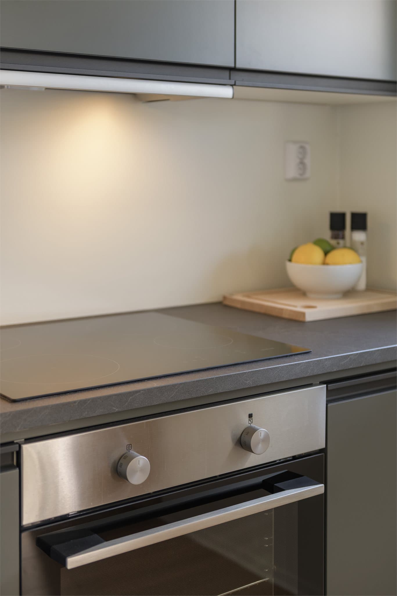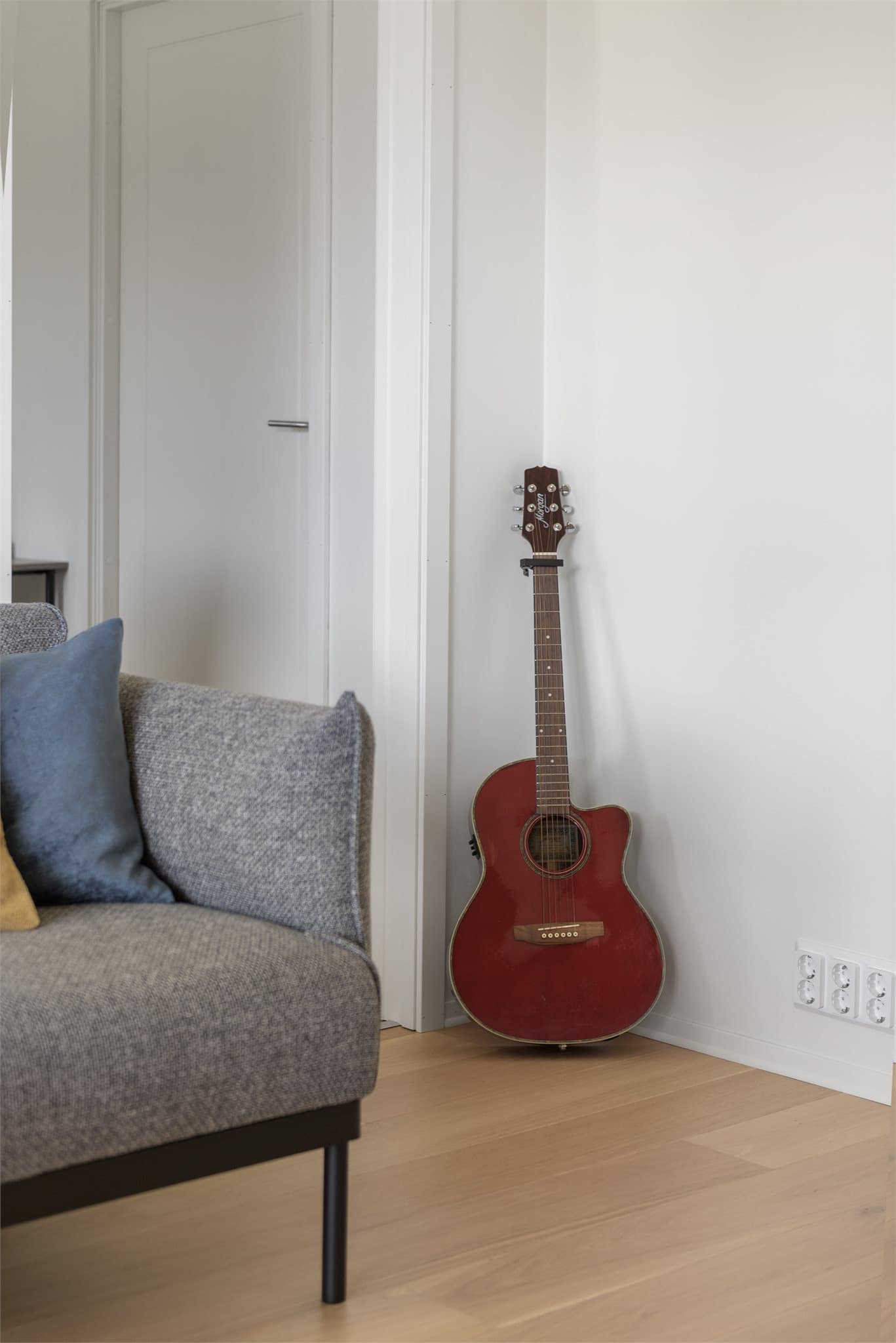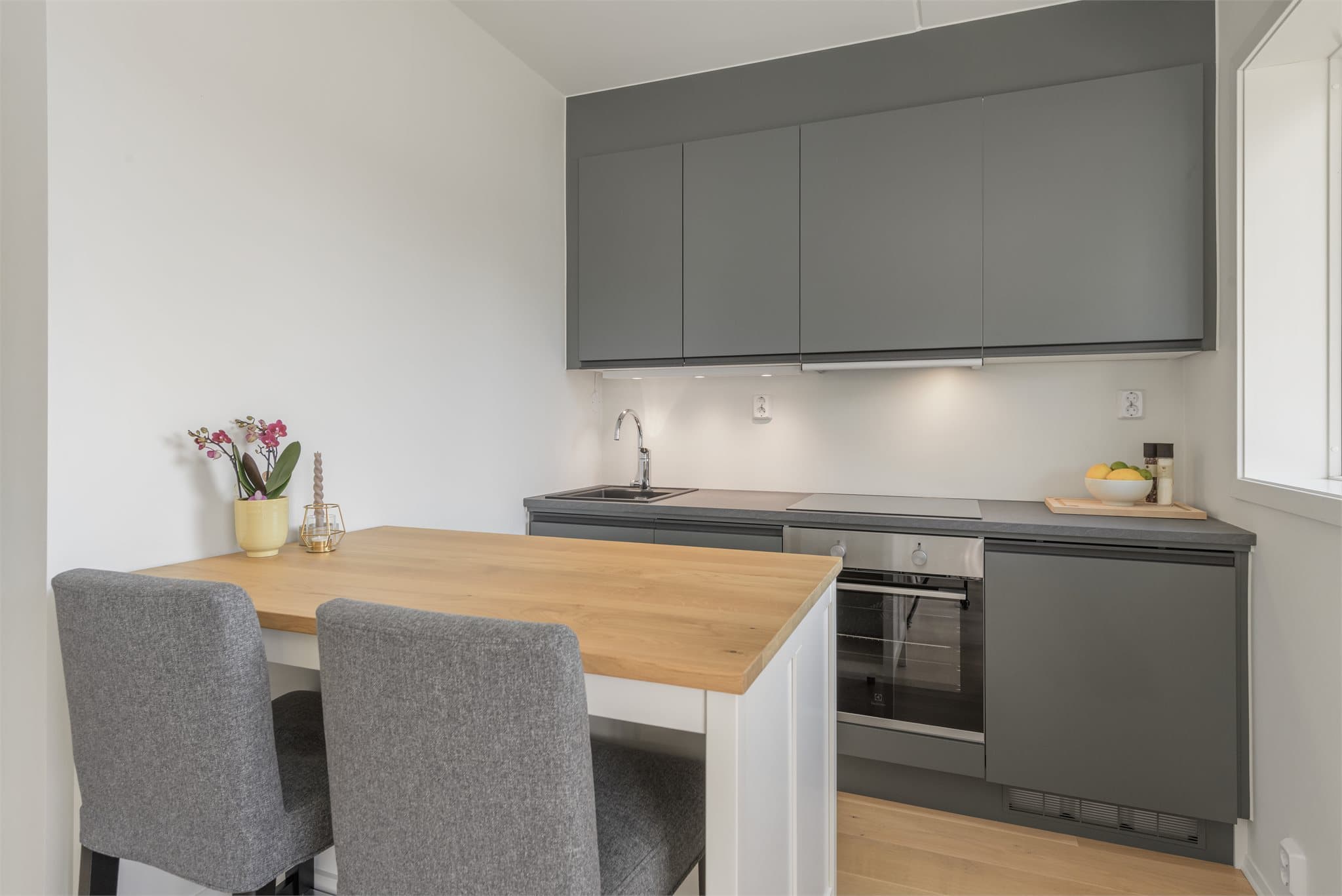 Leiligheten blir oppvarmet av vannbåren gulvvarme